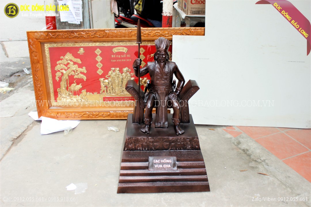 Tượng Vua Hùng quốc tổ Lạc Long Quân ngồi trên ngai bệ, tay cầm giáo cao 1m07, tượng được đúc hoàn toàn thủ công từ đồng đỏ thanh khiết, đường nét hoa văn sắc nét, khuôn mặt thần thái uy nghi. Tượng được hun màu giả cổ rất đẹp và độc đáo. Tượng dùng để trưng bày gìn giữ những giá trị văn hóa, thể hiện tinh thần con cháu Lạc Hồng. Tượng được đúc theo yêu cầu cho nhà hàng Trống Đồng số 1 Trần Đăng Ninh - Hà Nội.