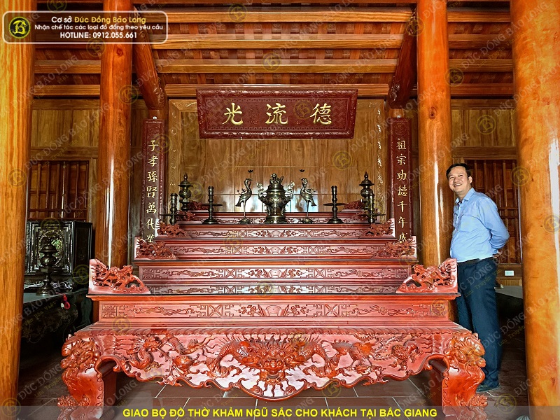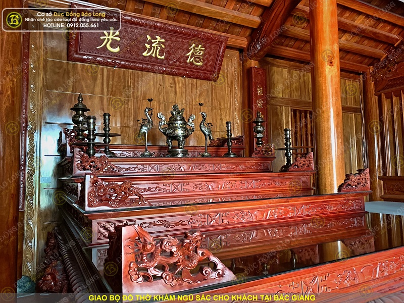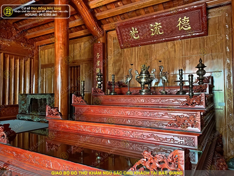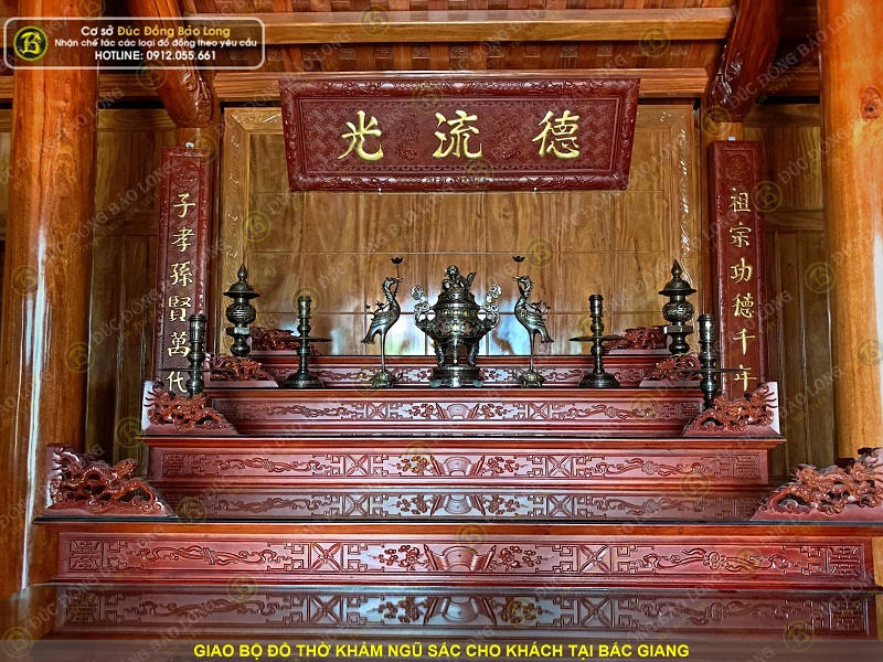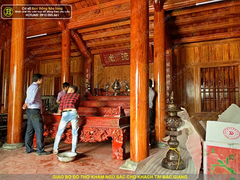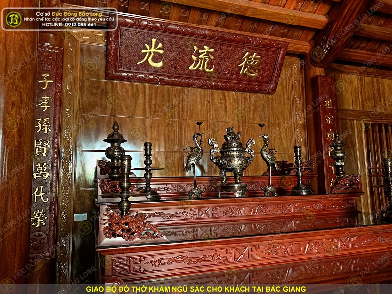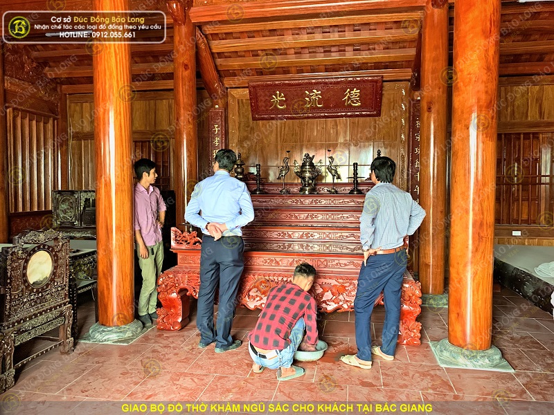 Cơ sở Đúc Đồng Bảo Long vừa qua đã tiến hành chế tác và giao thành công bộ đồ thờ bằng đồng khảm ngũ sắc cao 60cm cho khách hàng tại Việt Yên, Bắc Giang. Sau 4 tuần chế tác, bộ đồ thờ đã được hoàn thành và được chuyển đến cho khách hàng với chất lượng cực kỳ tốt, mẫu mã chuẩn được tất cả mọi người đánh giá rất cao.