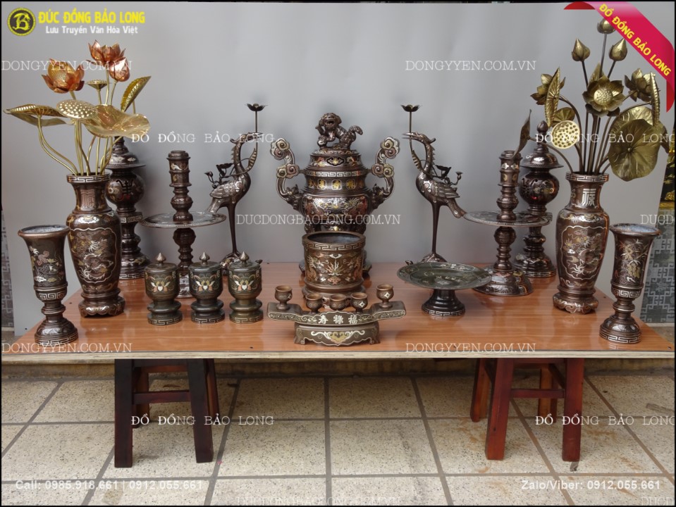 >> Qúy khách tham khảo một số bộ đồ thờ tại đây: Đồ Thờ Bằng Đồng hoặc Đồ Thờ Khảm Ngũ Sắc