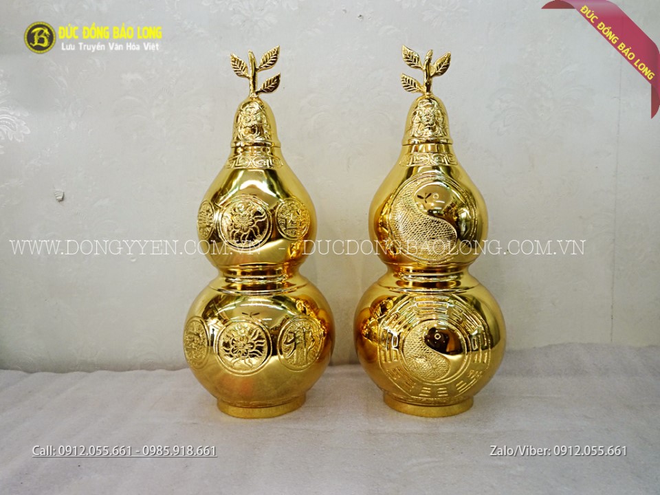 Hồ Lô Bát Quái Bằng Đồng Mạ Vàng 24k Cao 35cm