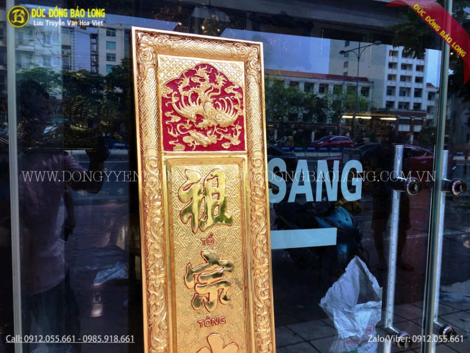 Bộ hoành phi câu đối mạ vàng 24k khổ 1m76 hàng đẹp là hàng đặt theo yêu cầu của khách hàng trong Sài Gòn. Bộ hoành phi câu đối này được chạm hoàn toàn thủ công từ nguyên liệu đồng nhập khẩu Hàn Quốc, đồng dày 8rem, khung xương inox 304 cho độ bền mãi mãi với thời gian. Sản phẩm được mạ phủ vàng ròng 24k bằng phương pháp điện phân nhúng bể cao cấp nhất hiện nay.