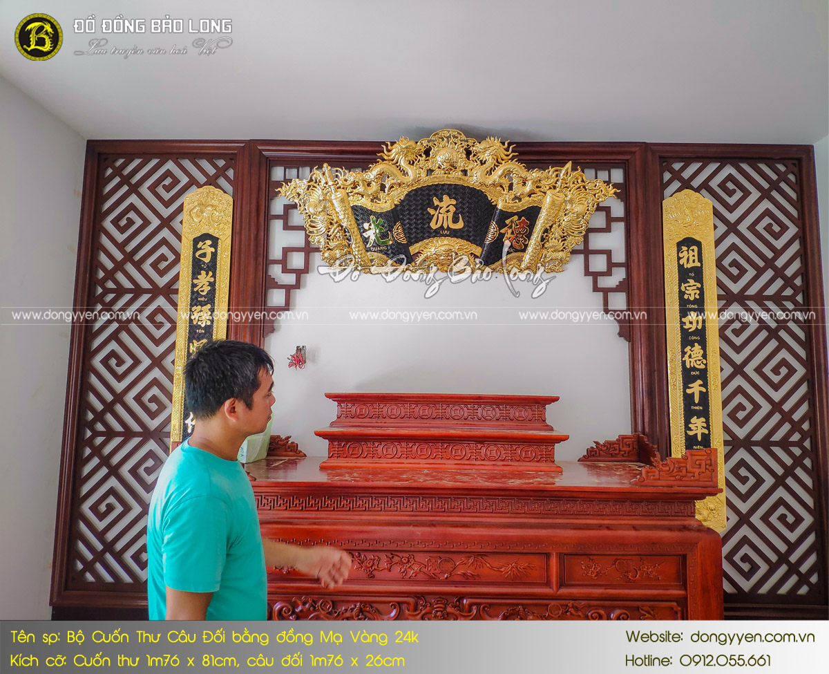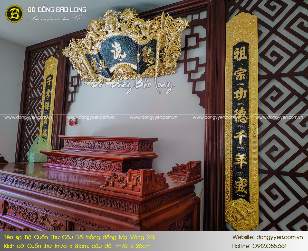 Bộ cuốn thư câu đối bằng đồng mạ vàng 24k