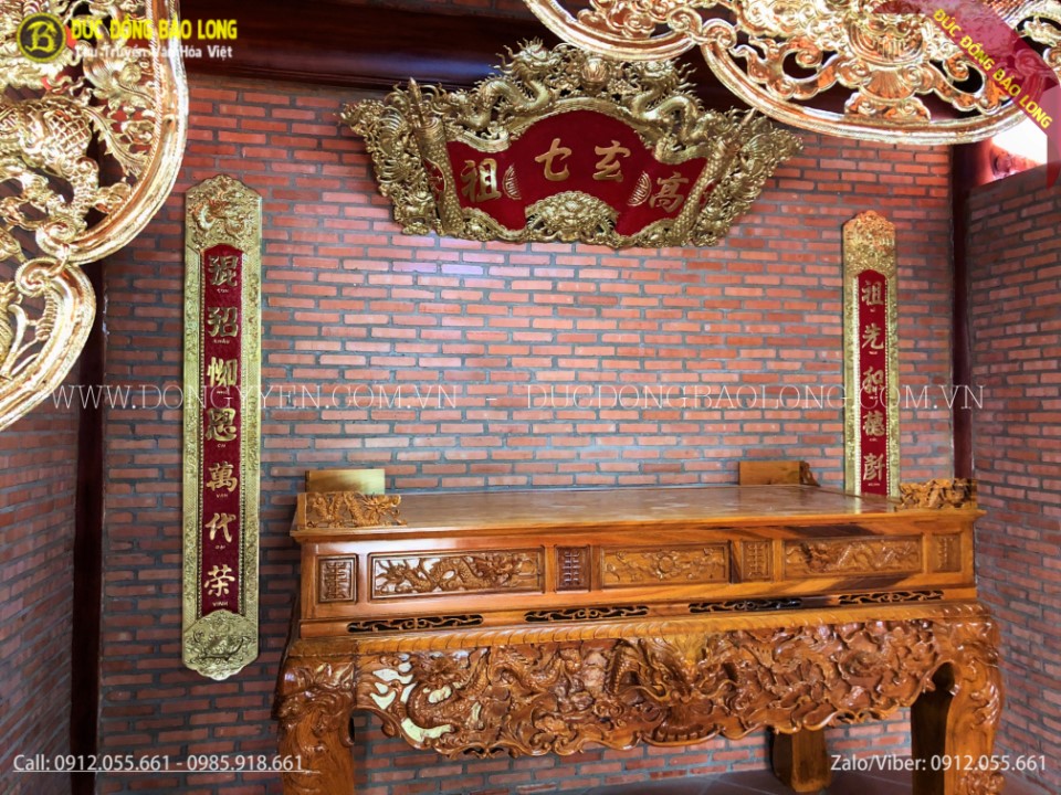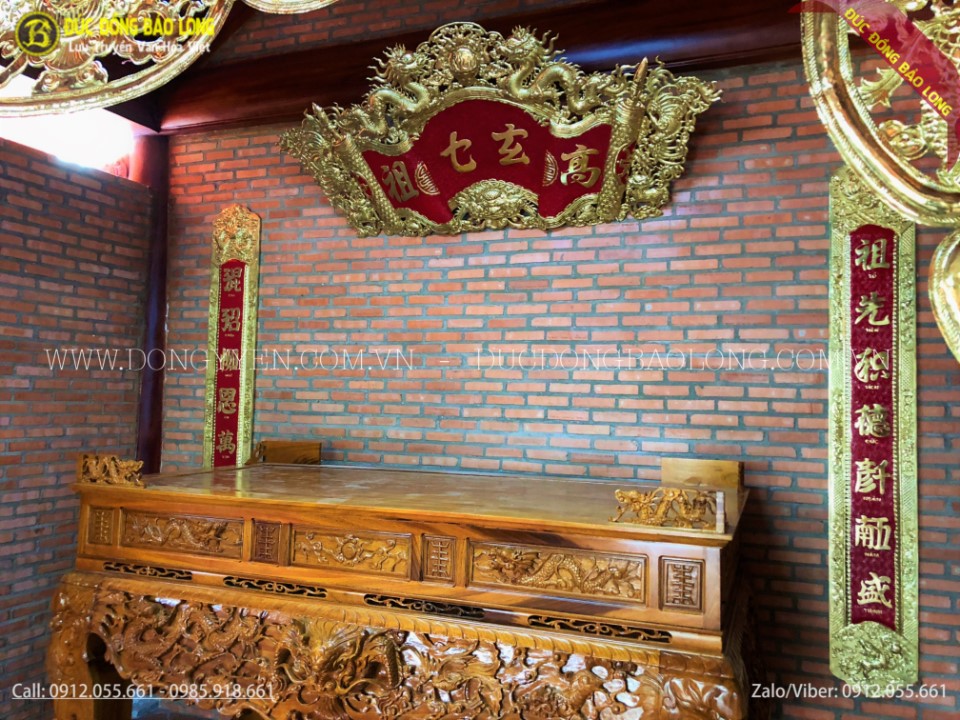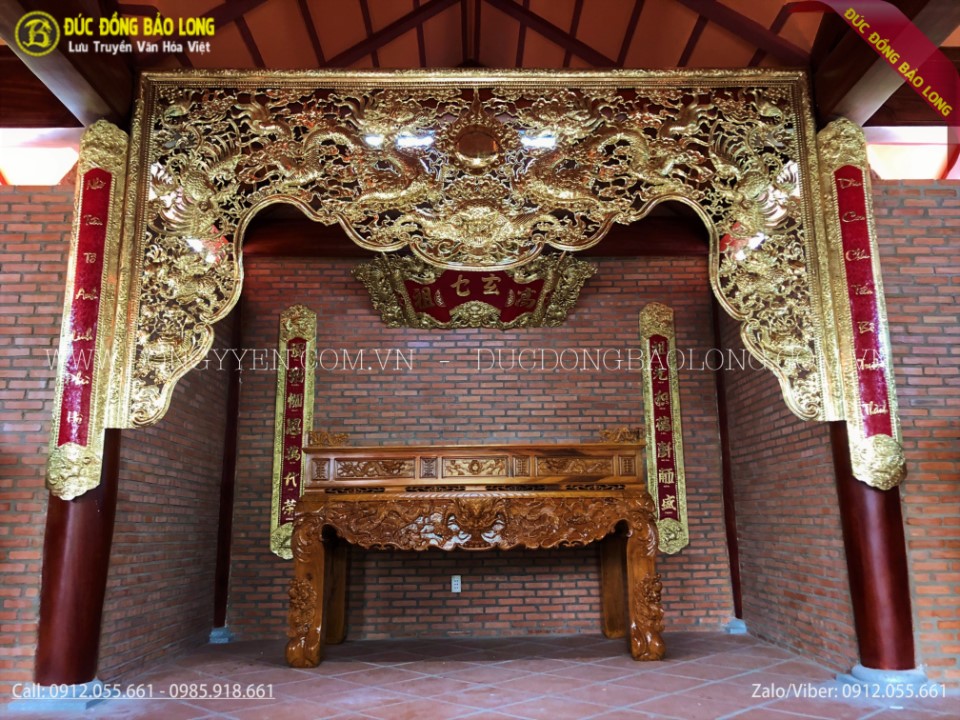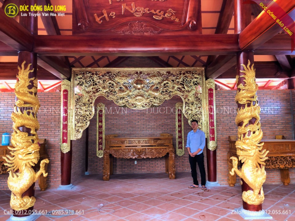 Cơ sở Đúc Đồng Bảo Long đã hoàn thiện và lắp đặt thành công 2 bộ sản phẩm gồm bộ cửa võng 3m7 và bộ cuốn thư câu đối 1m97 cho khách Củ Chi, TP.Hồ Chí Minh. Nhân viên chi nhính Sài Gòn đã đo đạc, khảo sát tại nhà thờ Họ Nguyễn tại Củ Chi sau đó chuyển thông tin về cơ sở Đúc Đồng tại Nam Định. Sau hơn 1 tháng chế tác, Bảo Long đã hoàn thiện đưa ra sản phẩm rất đẹp được lắp đặt tại nơi rất trang nghiêm của nhà thờ Họ. Toàn bộ sản phẩm được các nghệ nhân Bảo Long chạm hoàn toàn thủ công theo phương pháp truyền thống từ nguyên liệu đồng vàng nhập khẩu Hàn Quốc. Đồng rất dày dặn, đường nét chạm rất tỉ mỉ, chau chuốt, kết hợp với khung xương inox dày và có độ bền cơ học cao tại ra sản phẩm rất chắc chắn, bền đẹp.