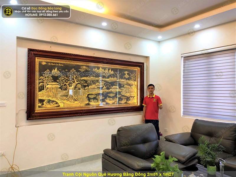 Cơ sở Đúc Đồng Bảo Long vừa tiến hành bàn giao và lắp đặt thành công bức tranh cội nguồn quê hương 2m81 x 1m27 cho vị khách hàng tại ngõ 300, Nguyễn Xiển, Thanh Xuân, Hà Nội. Bức tranh được lắp đặt tại phòng làm việc của vị lãnh đạo công ty. Đây là bức tranh phong cảnh được chúng tôi chế tác rất đẹp mắt và phù hợp với mọi không gian.