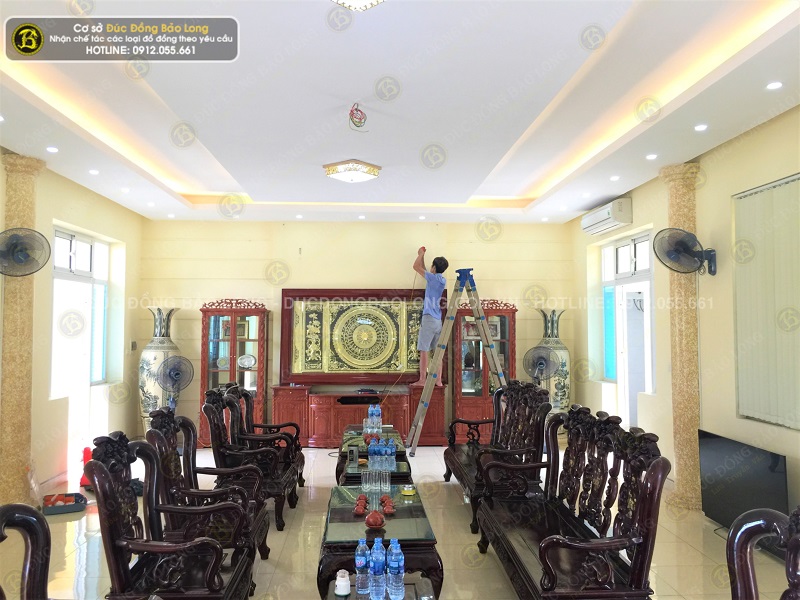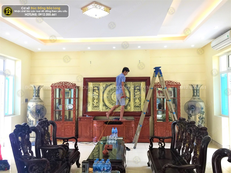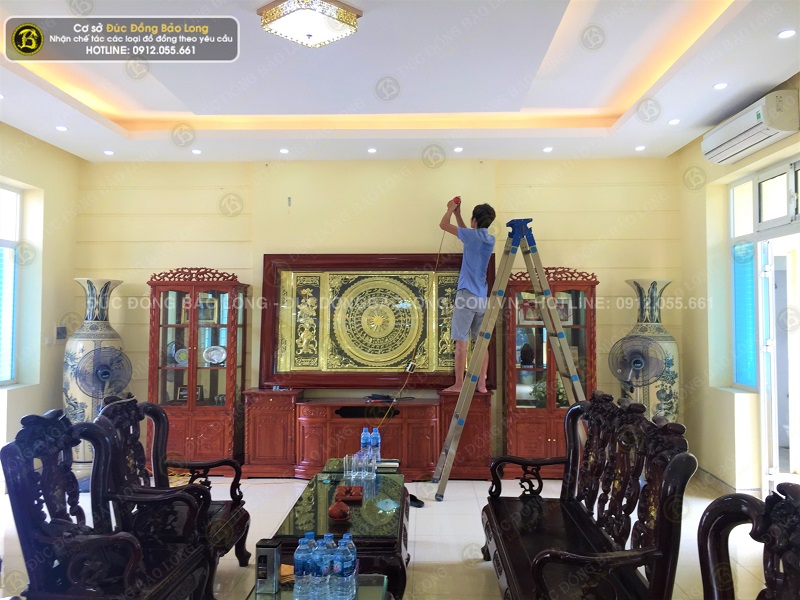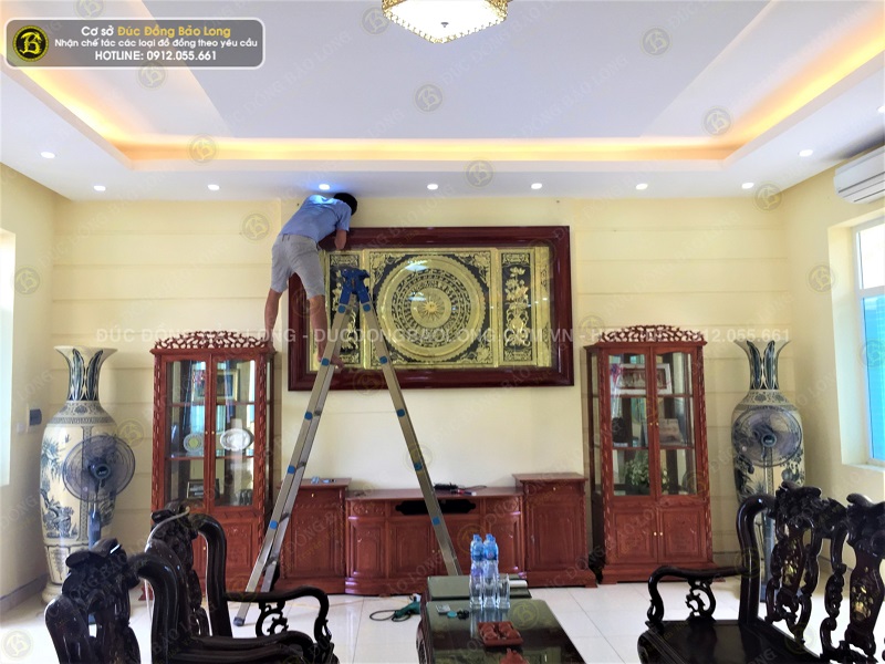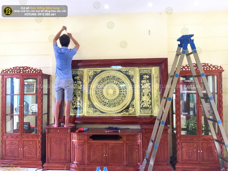 Mọi quy trình chế tác cũng như lắp đặt được chúng tôi đảm bảo và trải qua rất nhiều quy trình kiểm tra nghiêm ngặt. Bức tranh mặt trống đồng hoa sen khi treo lên luôn đảm bảo tính thẩm mỹ, tính an toàn trong thời gian sử dụng. Sau khi mọi công việc đã xong, mọi người đã kiểm duyệt và đã đánh giá rất cao quá trình làm việc của chúng tôi.