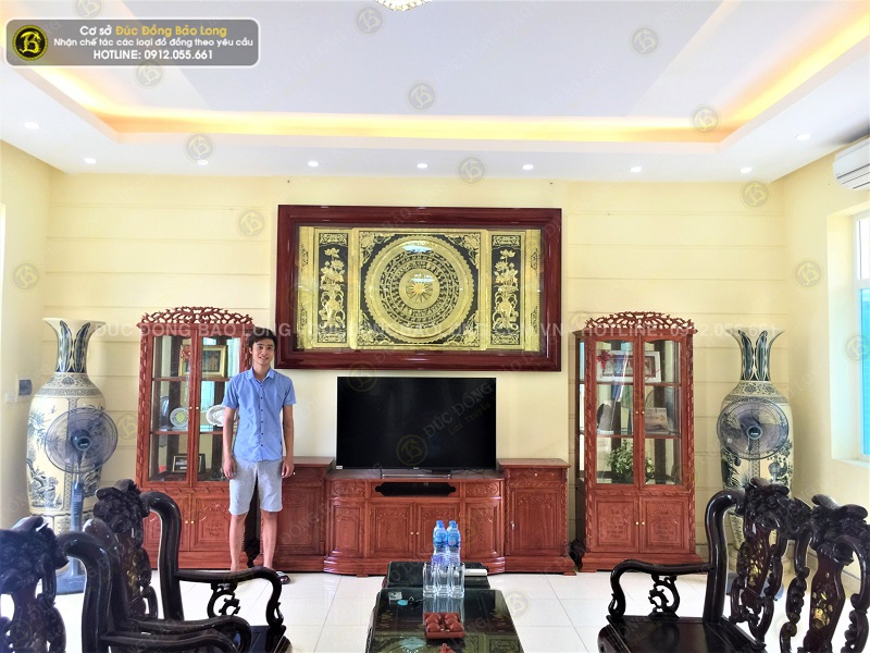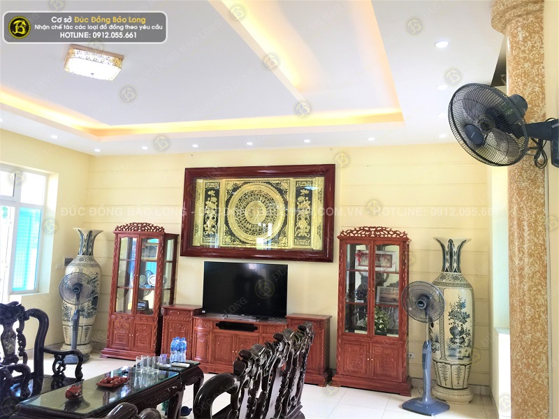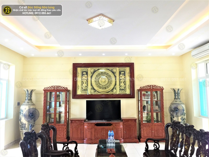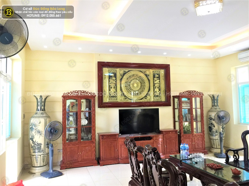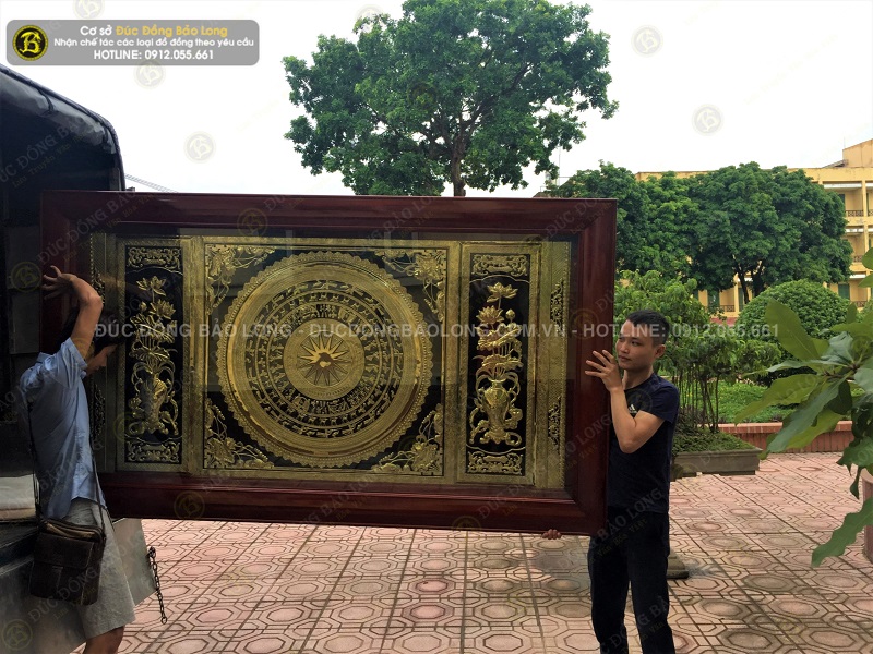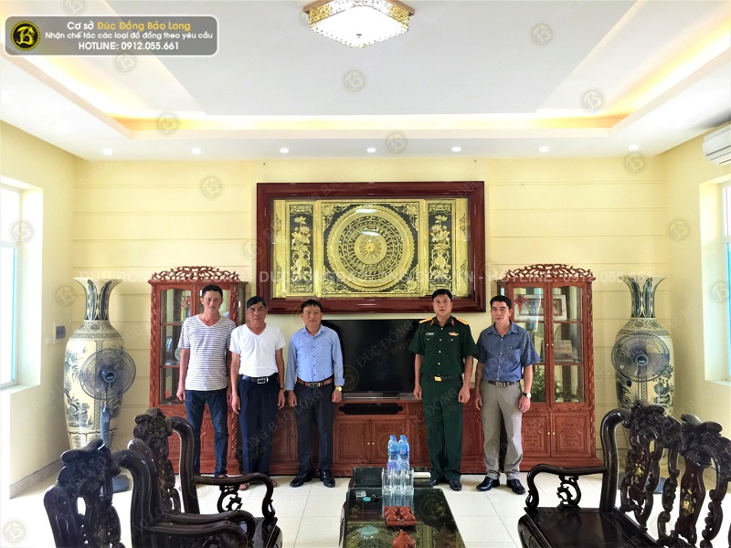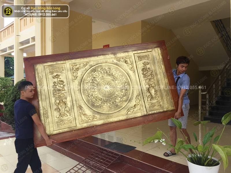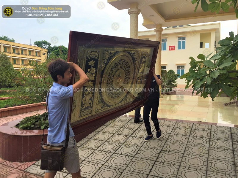 Cơ sở Đúc Đồng Bảo Long vừa qua đã tiến hành chế tác và lắp đặt thành công bức tranh mặt trống đồng hoa sen 2m31 x 1m33 cho vị khách hàng tại trường Sĩ Quan Pháo Binh, Sơn Tây, Hà Nội. Sau 5 tuần chế tác, bức tranh đã được hoàn thành và được chuyển đến cho khách hàng với chất lượng cực kỳ tốt, mẫu mã chuẩn được tất cả mọi người đánh giá rất cao. Bức tranh được treo tại phòng khách của nhà trường.