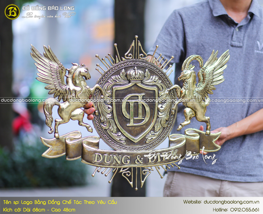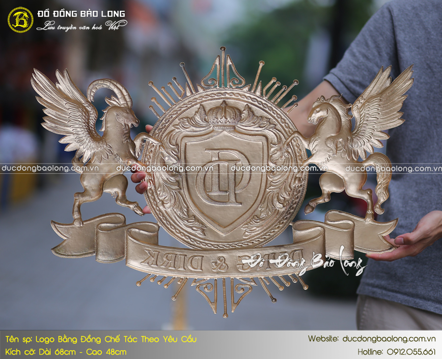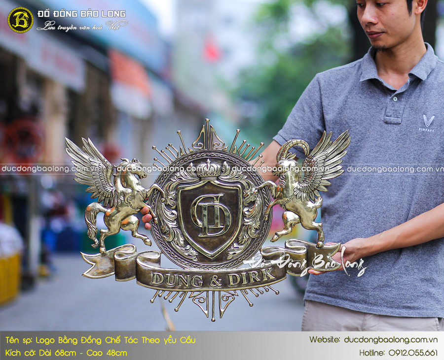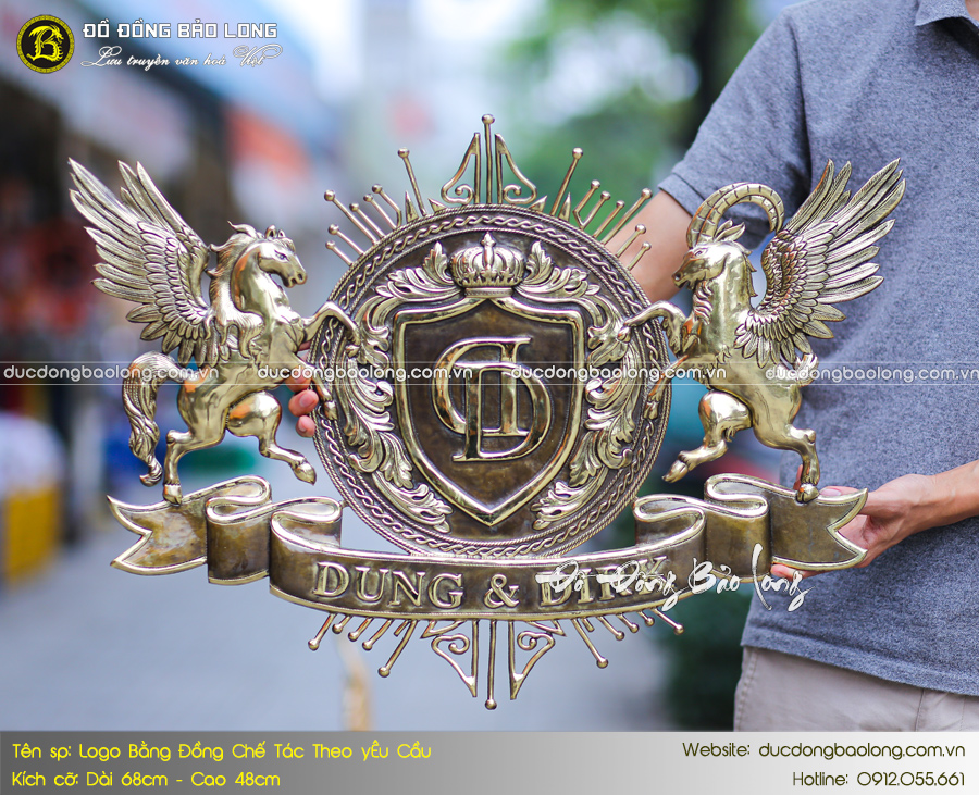 Mẫu logo được chế tác trên tấm đồng cao cấp, độ dày tiêu chuẩn 8rem. Mọi quy trình chế tác được thực hiện hoàn toàn bằng tay nghệ nhân cơ sở Đúc Đồng Bảo Long. Sản phẩm có hình khối cân đối, kết cấu chắc chắn, mang vẻ đẹp sang trọng.