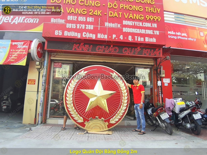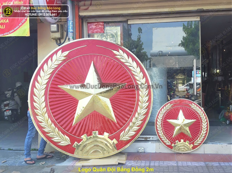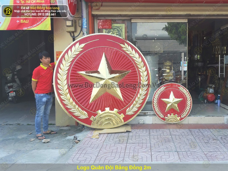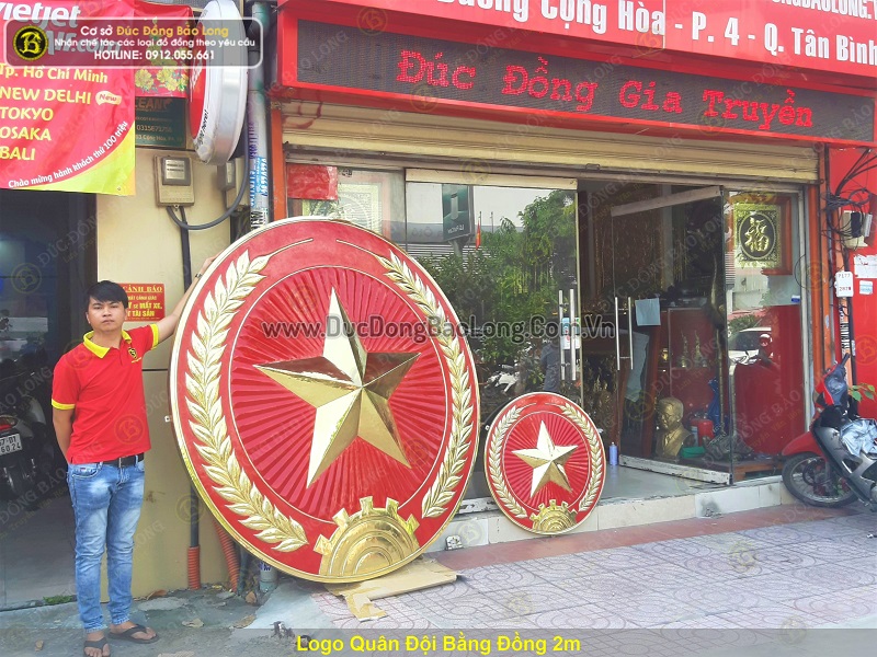 Cơ sở Đúc Đồng Bảo Long vừa hoàn thiện logo quân đội bằng đồng vàng 2m cho bộ đội biên phòng Bà Rịa Vũng Tàu. Huy hiệu Quân Đội được chúng tôi gia công theo mẫu chuẩn quốc gia.