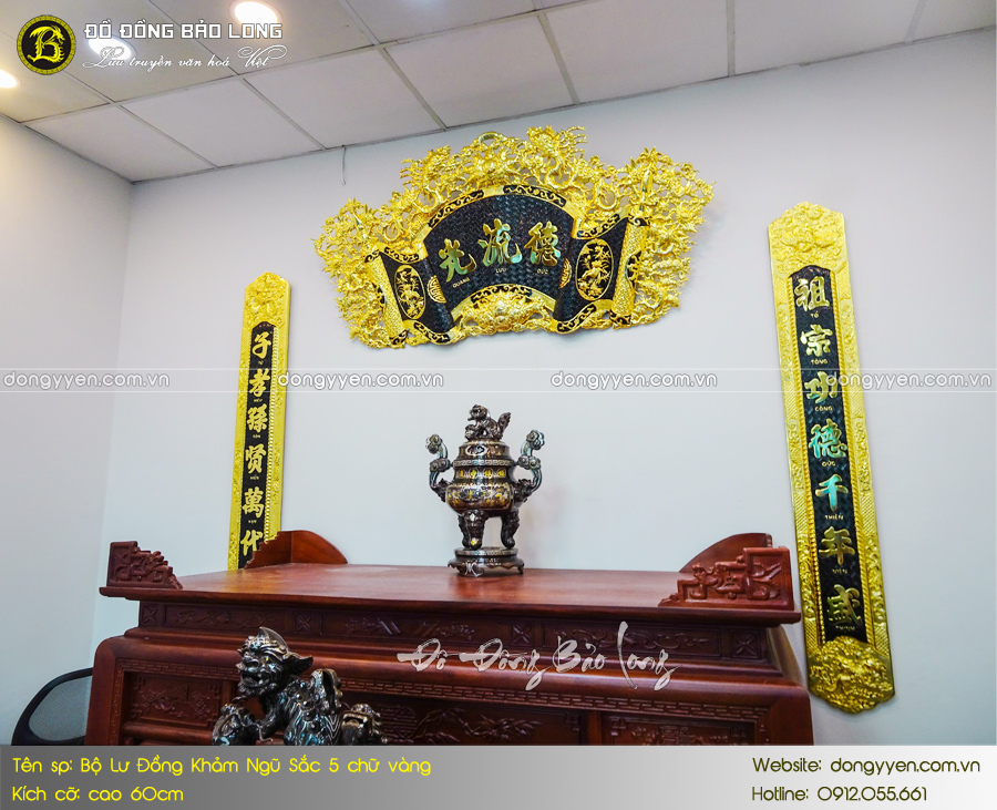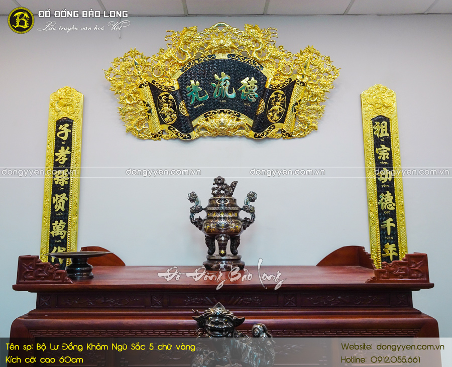 Cách bài trí Lư đồng khảm ngũ sắc 5 chữ vàng