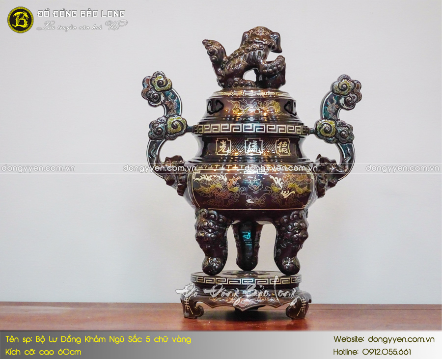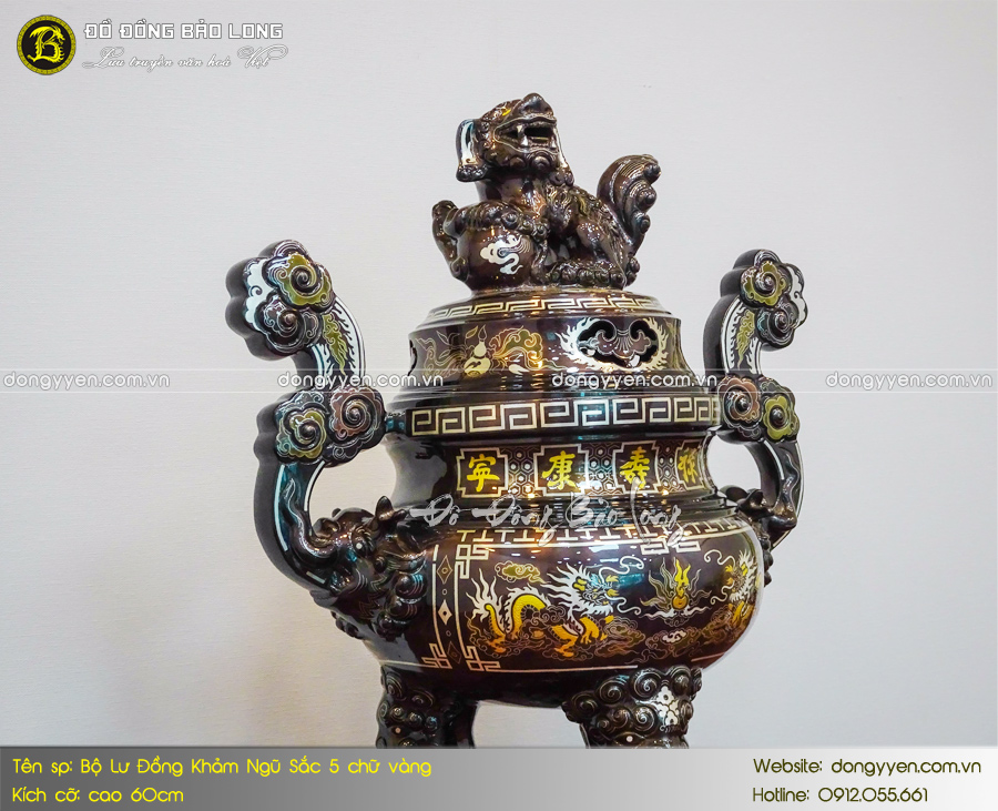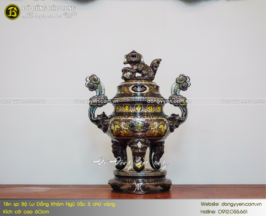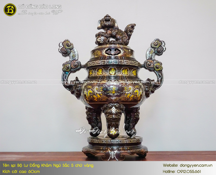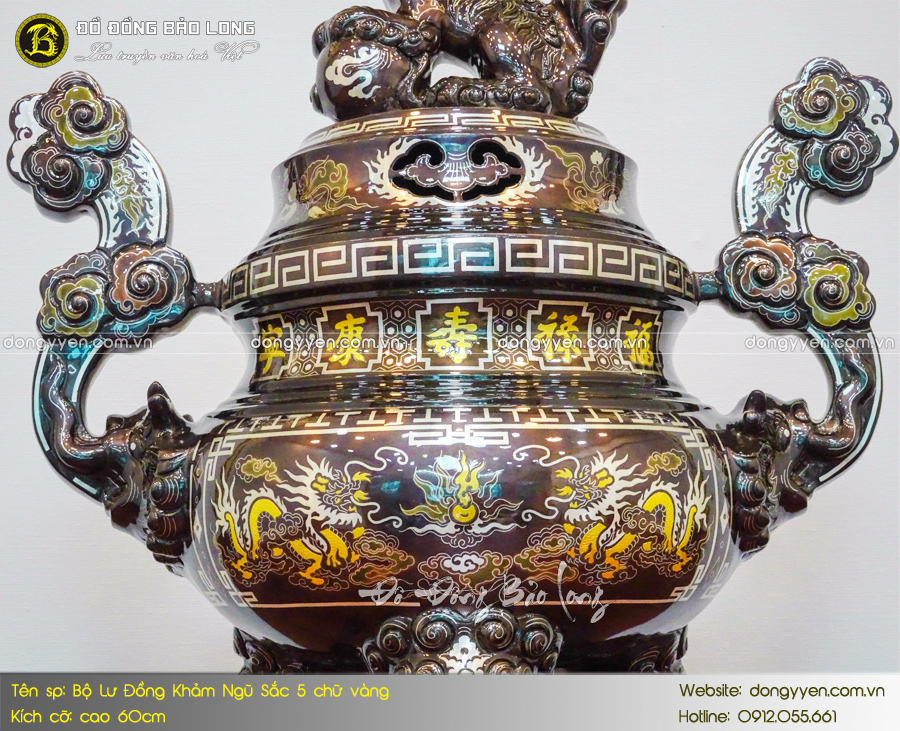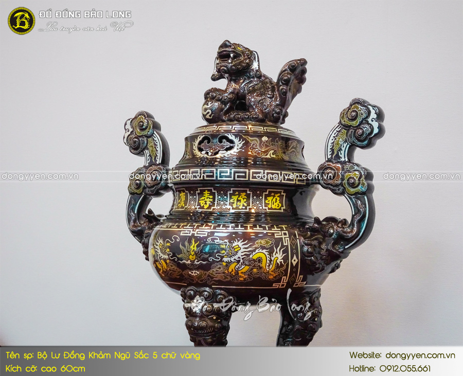 Quy cách chế tác Lư đồng khảm Ngũ Sắc 5 chữ vàng