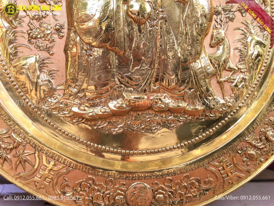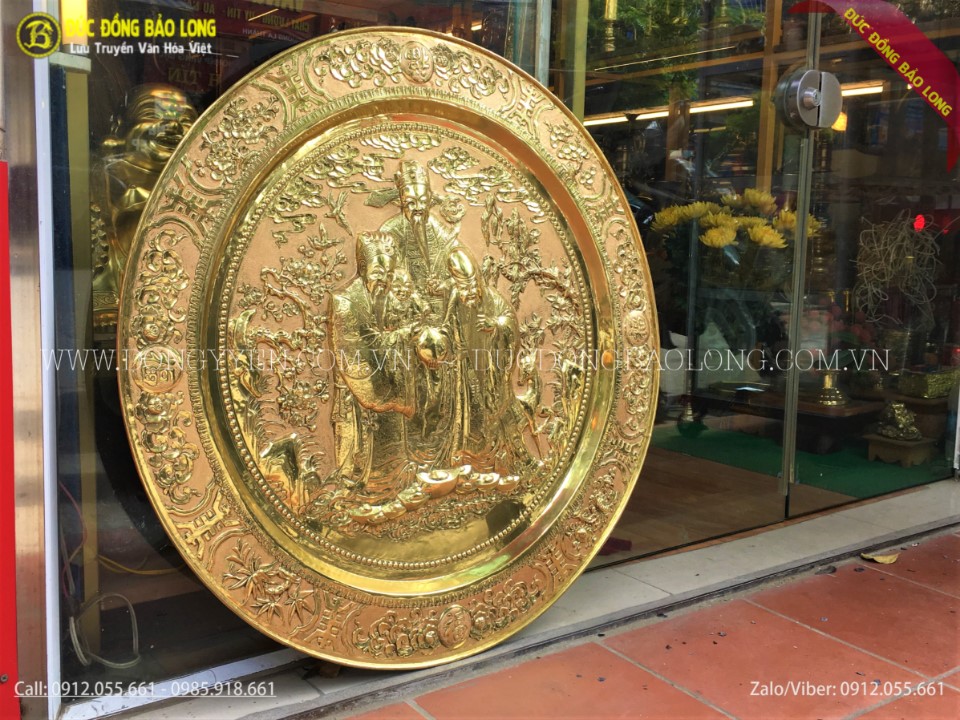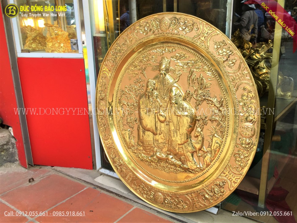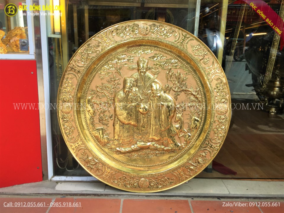 Mâm Đồng Phúc Lộc Thọ 81cm thuộc loại hàng tinh xảo, rất phù hợp để làm quà biếu tặng, quà mừng tân gia, quà đối tác...treo nơi phòng khách, phòng làm việc hoặc phòng thờ, hoặc sưu tầm theo sở thích. Mâm đồng Phúc lộc thọ 81cm còn được nhiều khách hàng đặt mạ vàng hoặc thếp vàng 9999 để tăng cát khí, độ sang trọng và độ bền màu theo thời gian.