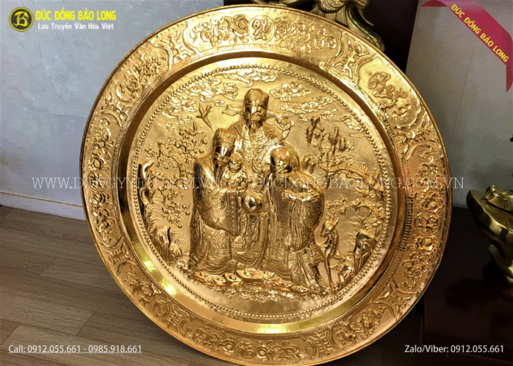 Mâm đồng phúc lộc thọ mạ vàng đường kính 81cm phù hợp để treo ở phòng khách, phòng thờ, phòng làm việc hoặc làm quà biếu tặng rất ý nghĩa.