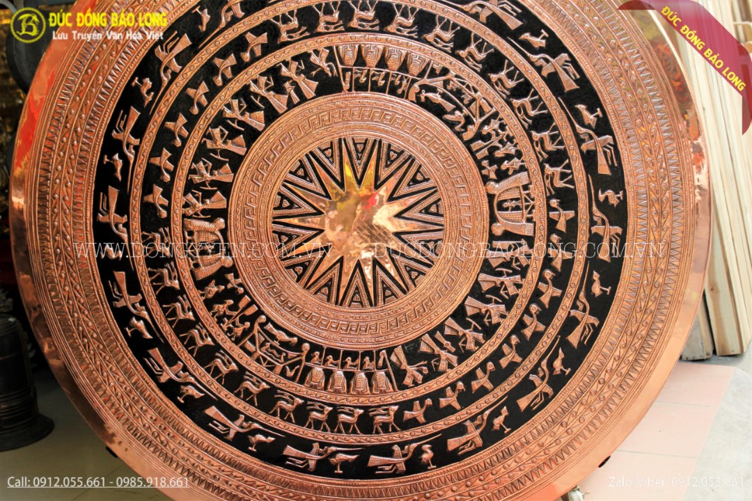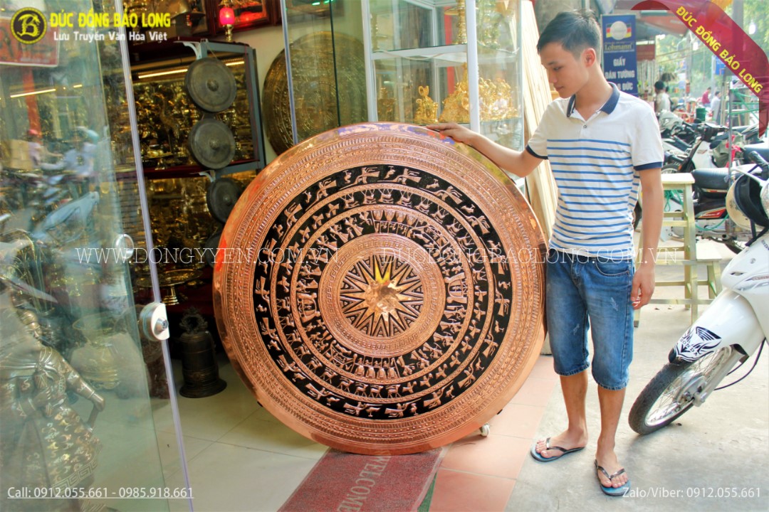 Mặt trống đồng đường kính 1m27 chuẩn mẫu mặt trống Đông Sơn, Ngọc Lũ của hội mỹ thuật Việt Nam. Mặt trống đồng đang là sản phẩm rất thông dụng để trang trí tại các văn phòng làm việc, sảnh công ty tập đoàn, phòng khách gia đình,...
