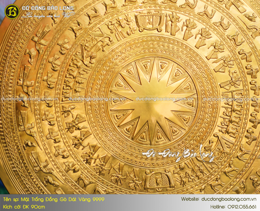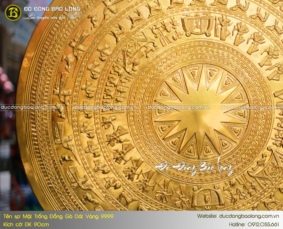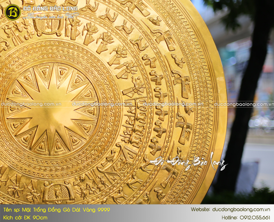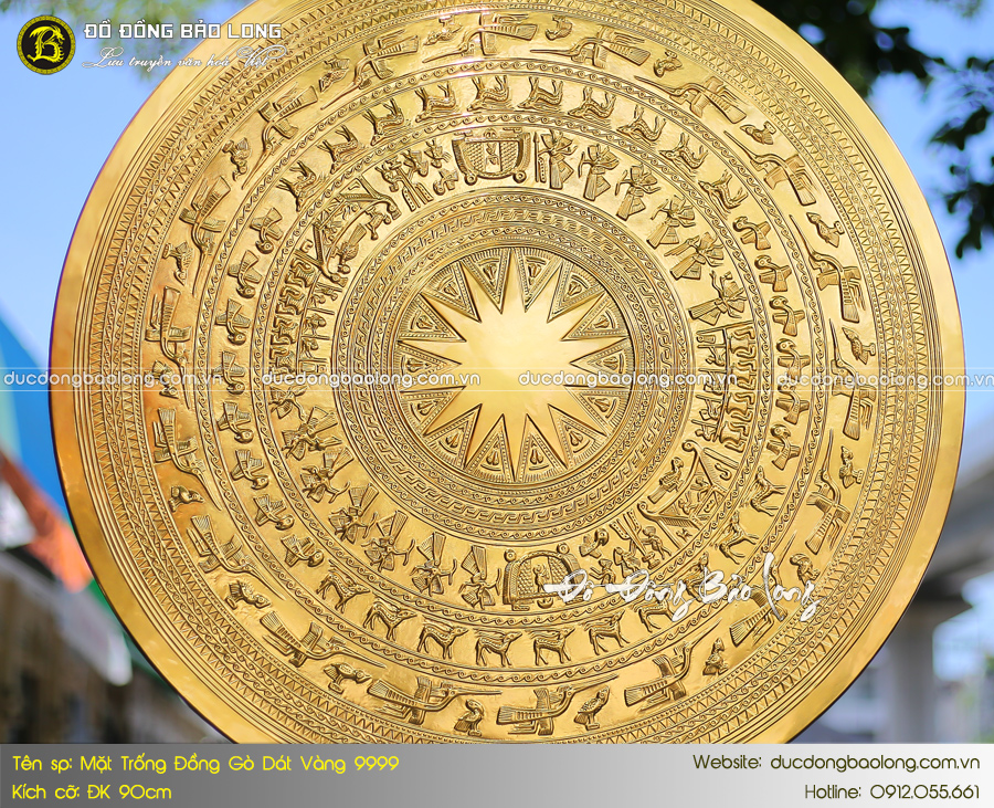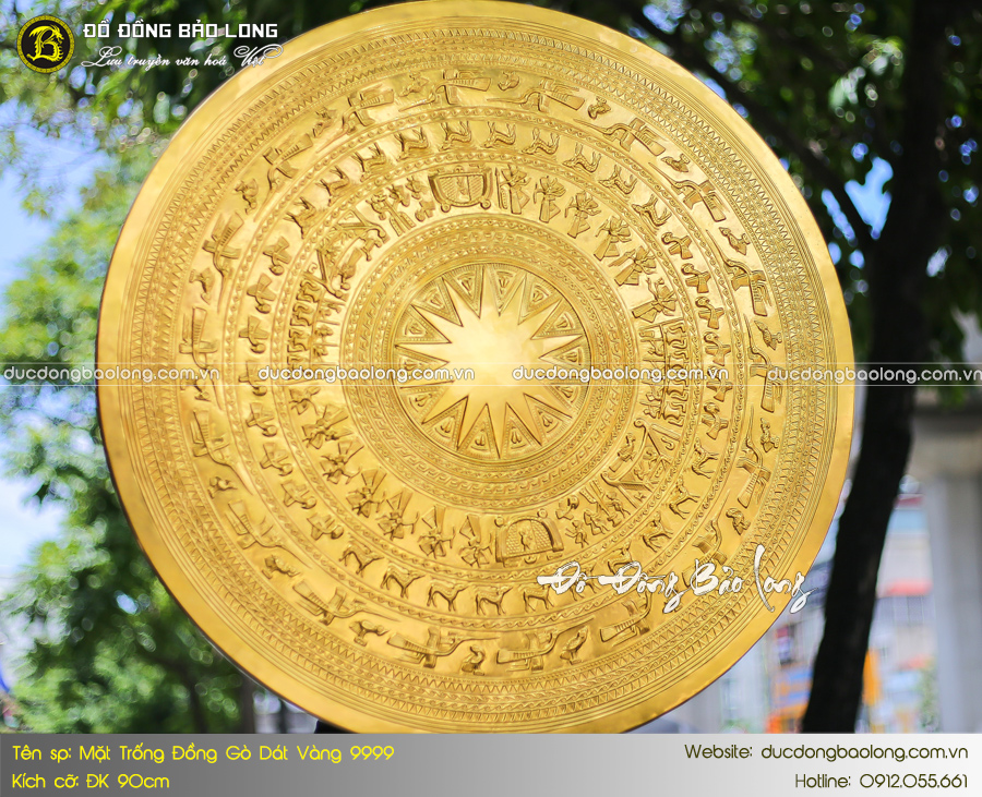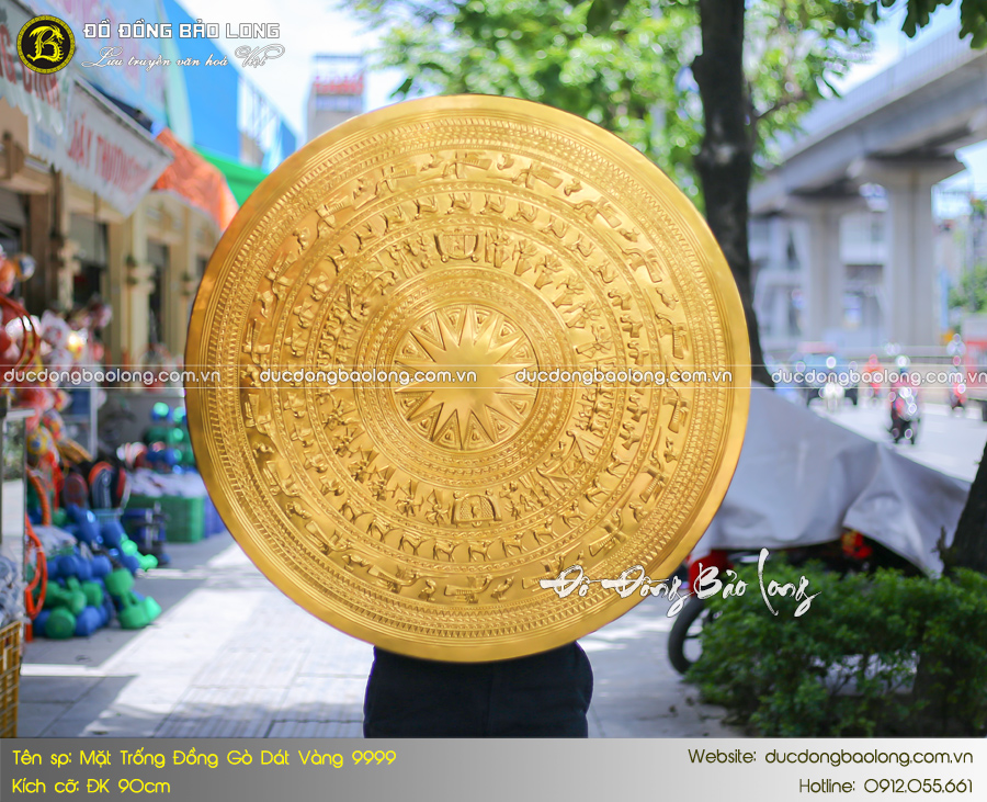 Mặt trống đồng ĐK 90cm dát vàng 9999 thích hợp treo ở nơi có không gian rộng