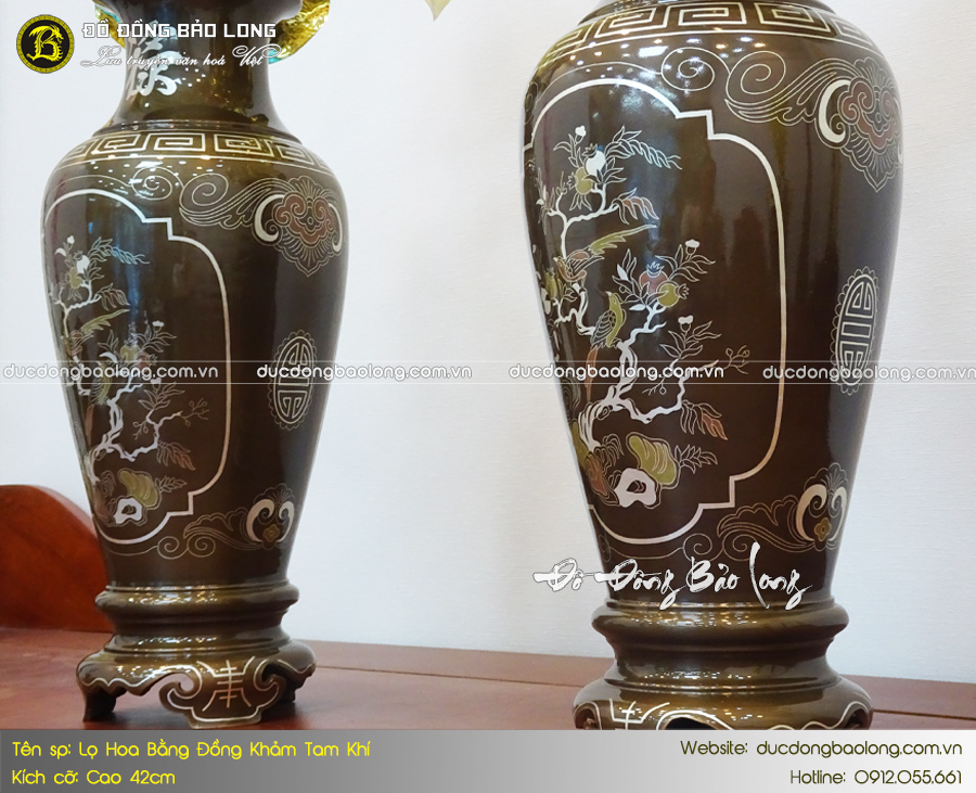 >> Xem thêm: Mẫu lọ hoa bằng đồng khảm vàng bạc hoa văn long phụng cao 38cm