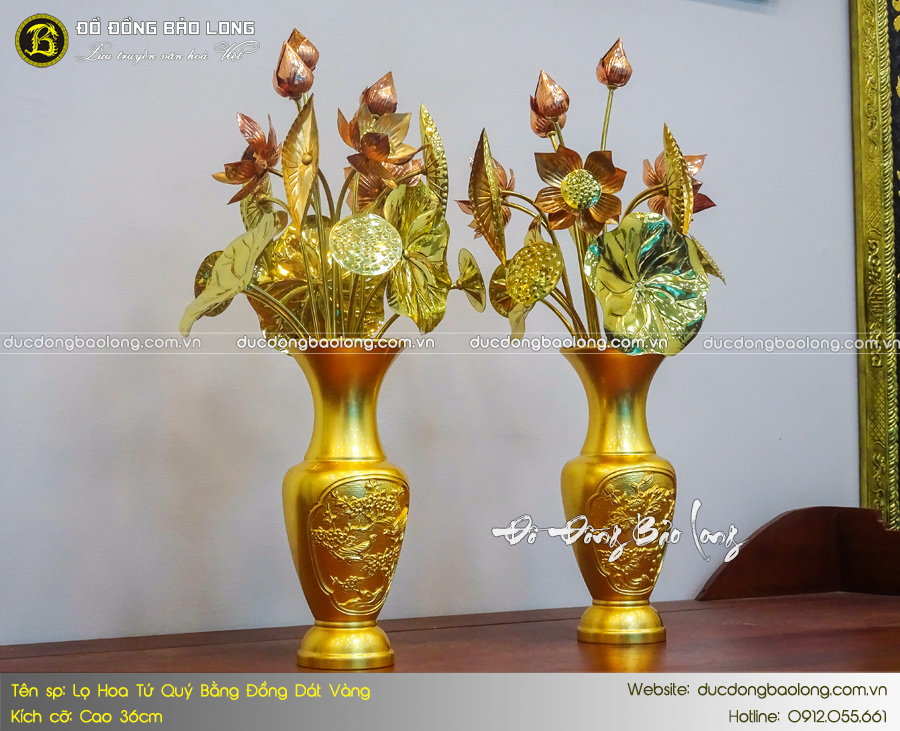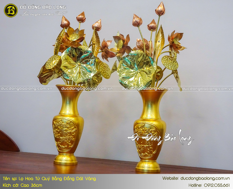 Sản phẩm có mẫu mã đẹp, tạo điểm nhấn hoàn hảo cho không gian trưng bày. Mẫu lọ hoa tứ quý bằng đồng dát vàng có chất lượng hoàn thiện tốt, kết cấu chắc chắn, được nhiều gia chủ yêu thích và lựa chọn.
