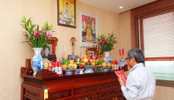 Còn đối với nhà chung cư, nếu đặt bàn thờ và phòng khách cùng một mặt bằng thì cần có có vách ngăn hoặc tấm bình phong ngăn cách giữa không gian thờ và phòng tiếp khách. Điều này để tránh các tầm nhìn trực tiếp vào khu thờ tự.