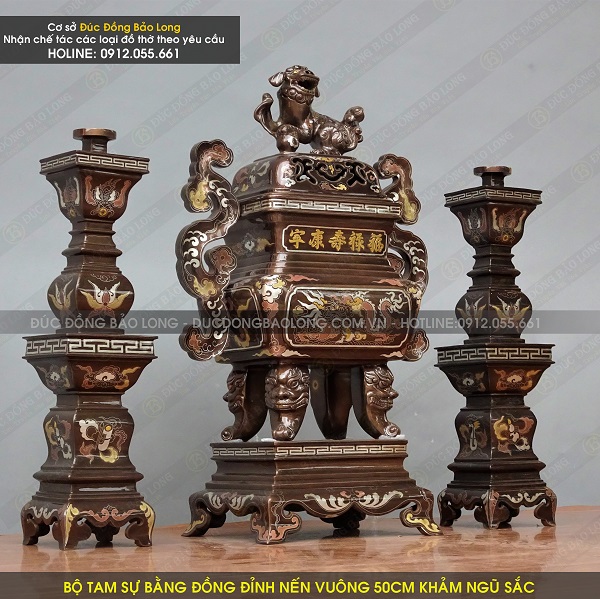 Đồ đồng tại Bảo Long được đúc thủ công tinh xảo với họa tiết hoa văn sắc nét. Cam kết đảm bảo độ bền lâu, không bong tróc, xuống màu bởi sử dụng đồng nguyên chất.