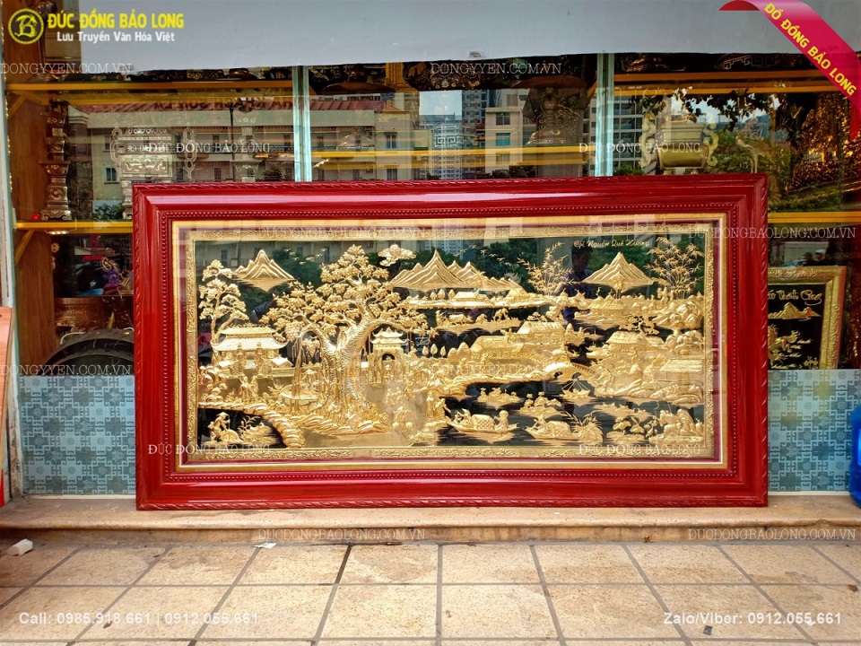 Tranh đồng quê bằng đồng tái hiện sinh động cảnh làng quê Bắc Bộ Việt Nam. Ở đó bạn sẽ thấy hình bóng ông đồ già ngồi dưới gốc cây đa đầu làng, thấy đám trẻ vui đùa, thấy chợ quê, ao nước. Tất cả đều được chế tác sinh động và có hồn, giống như chính ta đang nhìn thấy làng quê đó vậy.