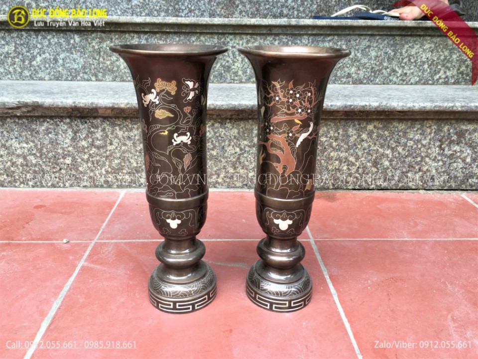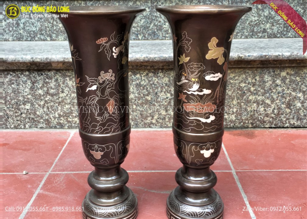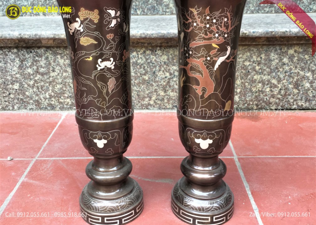Ống Hương - ống nhang được đúc hoàn toàn thủ công từ nguyên liệu đồng đỏ thanh khiết. Sản phẩm đúc rất dày dặn, tinh xảo, gia công bề mặt tốt hàng làm kỹ rất đẹp. Sản phẩm được khảm kỹ lưỡng, khảm ngũ sắc cao cấp bằng các kim loại quý vàng, bạc, đồng đỏ, đồng xanh.
