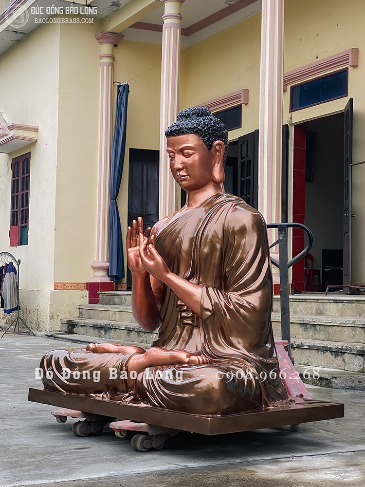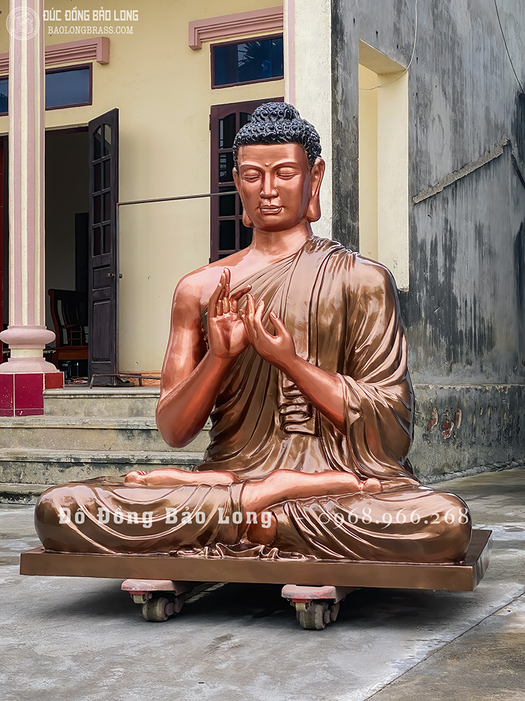 Pho tượng Phật Thích Ca Chuyển Pháp Luân bằng đồng đỏ cao 1m7