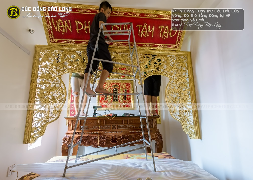 Thi công cuốn thư câu đối, cửa võng, đồ thờ cúng bằng đồng cho khách An Dương, Hải Phòng