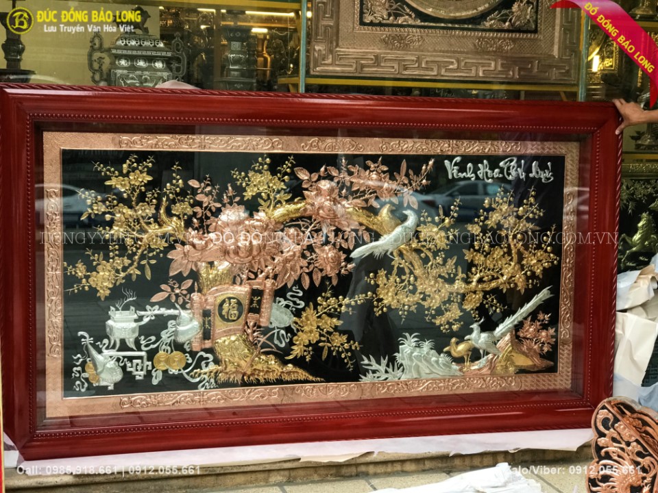 Cơ sở Đúc Đồng Bảo Long là đơn vị cung cấp tranh đồng uy tín, chất lượng. Các sản phẩm của chúng tôi được gò chạm thủ công dưới bàn tay của người nghệ nhân giỏi làng nghề Tống Xá, Ý Yên, Nam Định. Cùng với đó là đội ngũ thợ lành nghề và hệ thống xưởng đúc cỡ lớn, xưởng vệ tinh chuyên nghiệp cho chất lượng đạt chuẩn.Mỗi sản phẩm của Bảo Long là một tác phẩm nghệ thuật bởi đó là cả tâm huyết của người nghệ nhân.