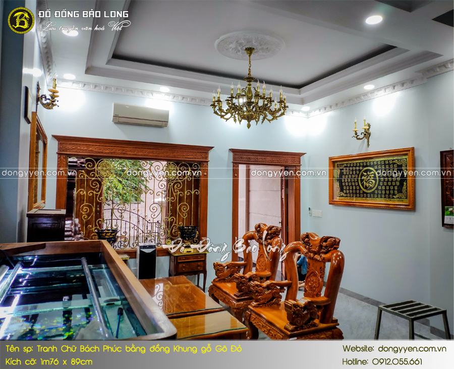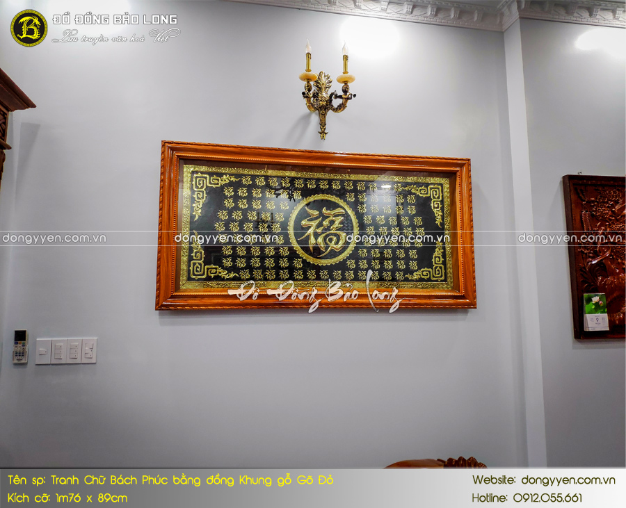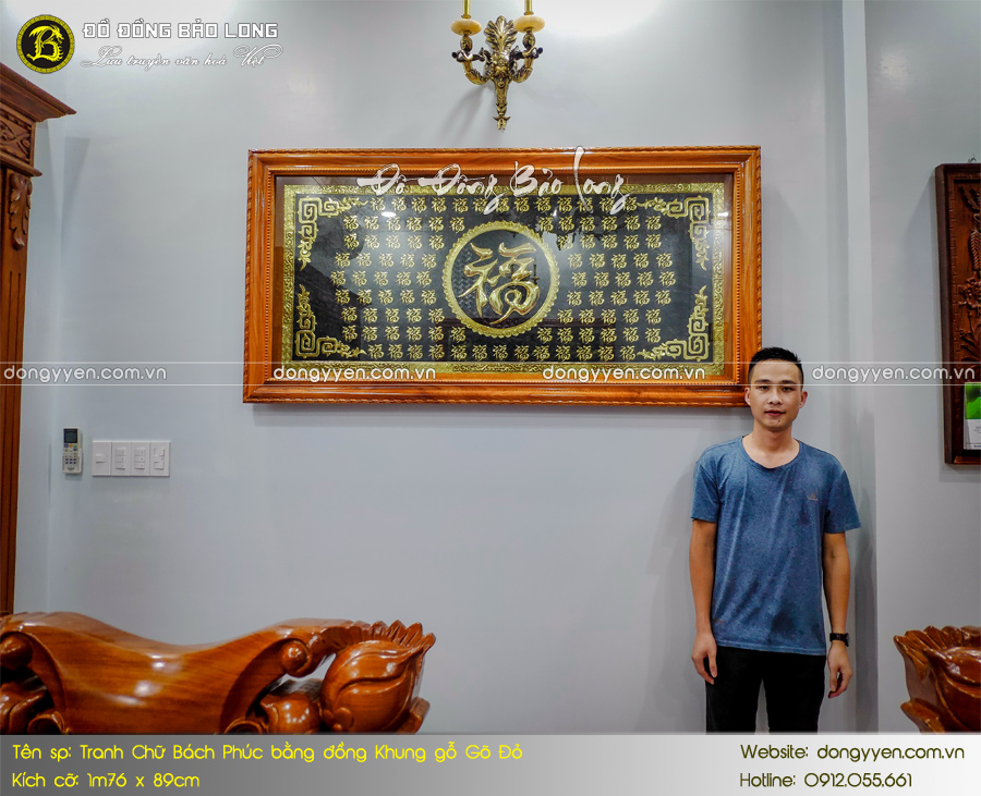 Tranh Bách Phúc bằng đồng khung gỗ gõ đỏ 1m76 x 89cm có vẻ ngoài độc đáo, ý nghĩa. Bức tranh không chỉ tăng vẻ đẹp không gian mà còn mang ý nghĩa đặc biệt. Bức tranh Bách Phúc thích hợp treo trong phòng khách, phòng thờ hay phòng làm việc...