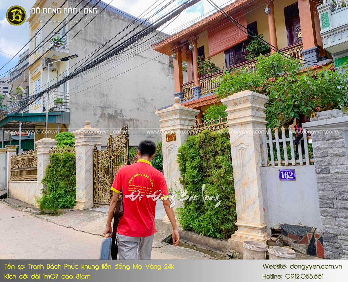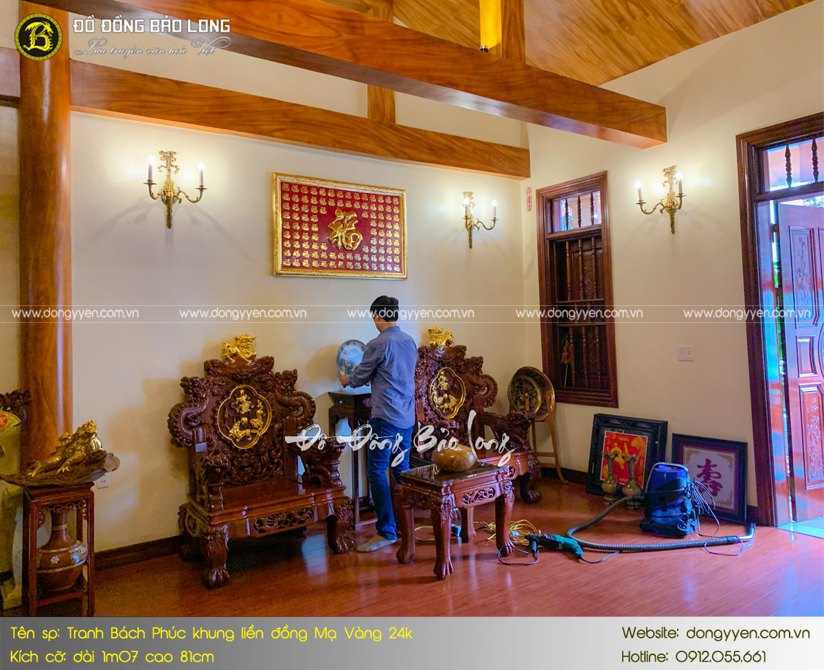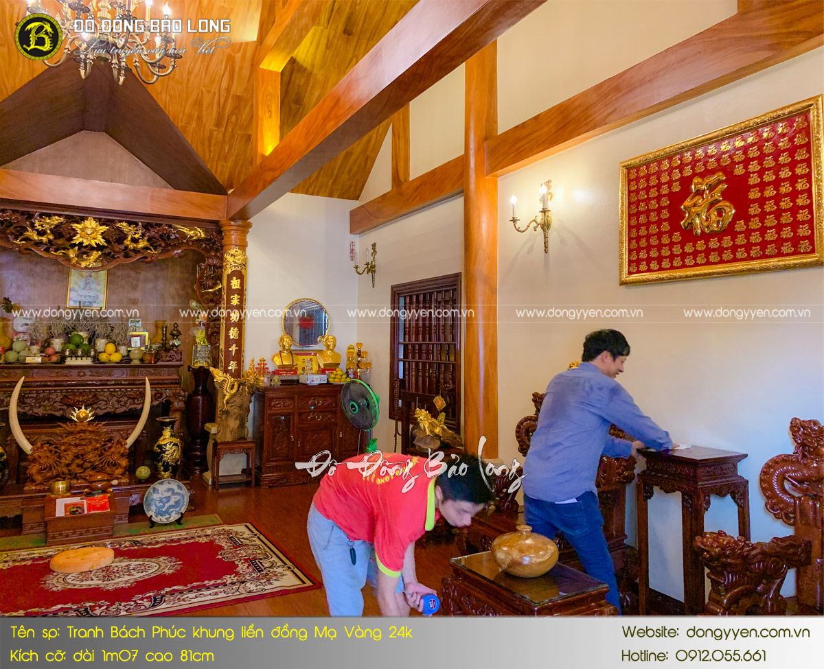 Lắp đặt tranh Bách Phúc khung liền đồng mạ vàng 24k