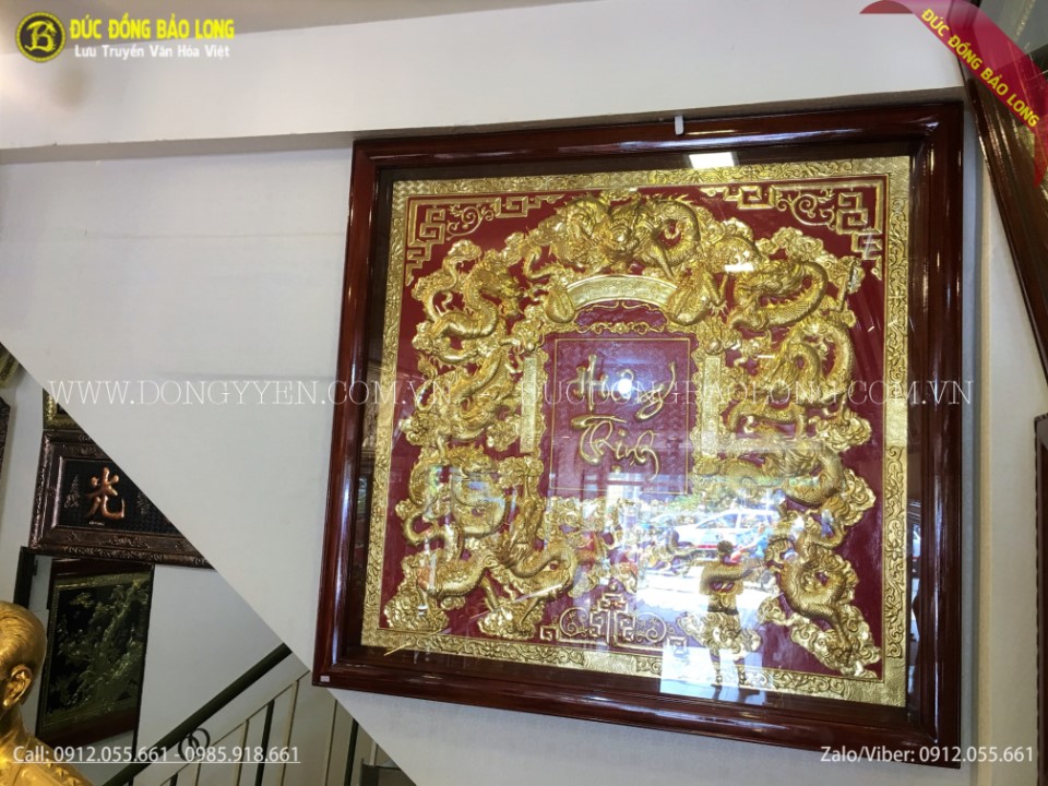 Tranh cửu long hưng thịnh bằng đồng mạ vàng 24k