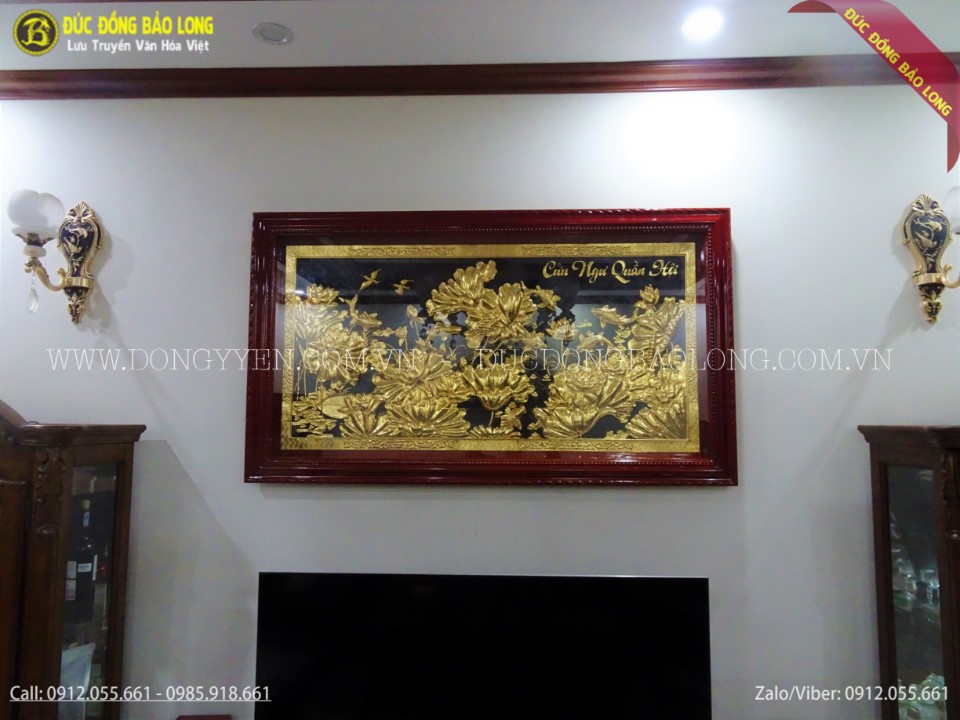 Tranh cửu ngư quần hội bằng đồng mạ vàng 24k khung 2m31