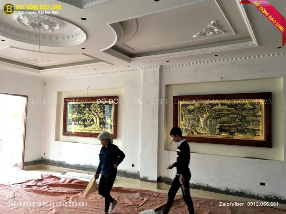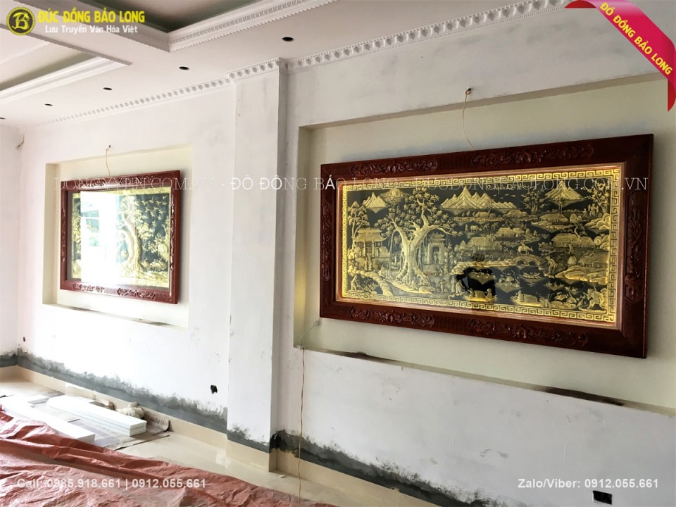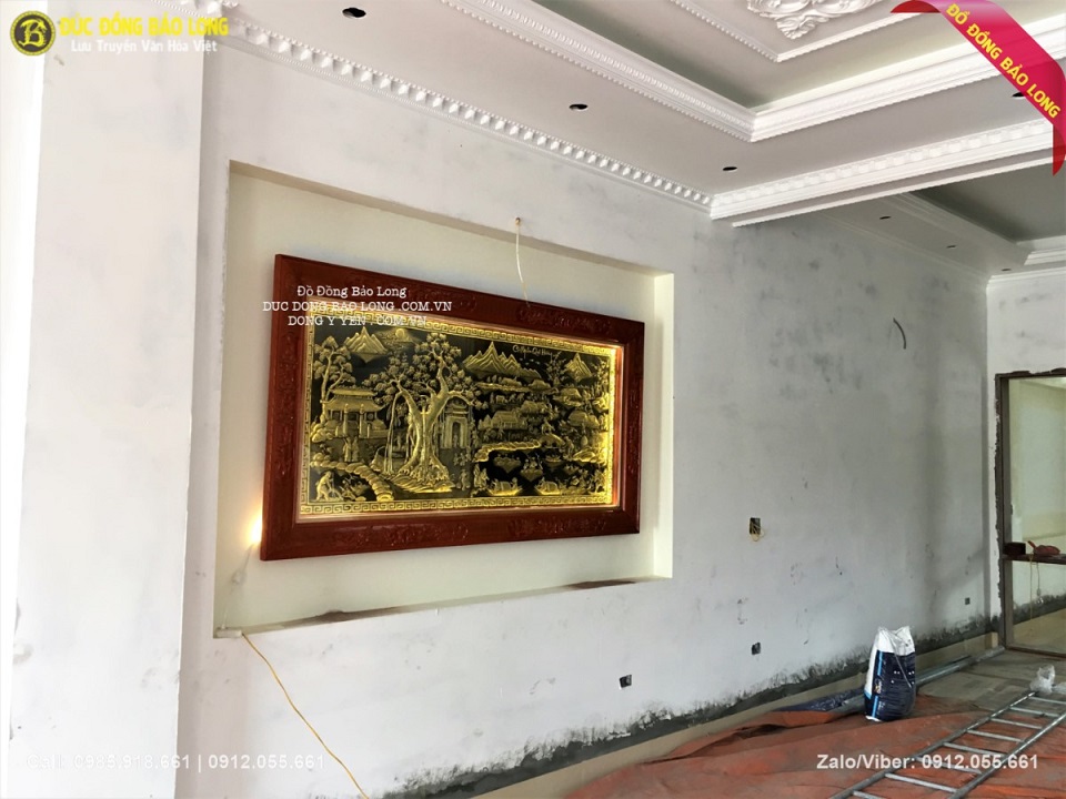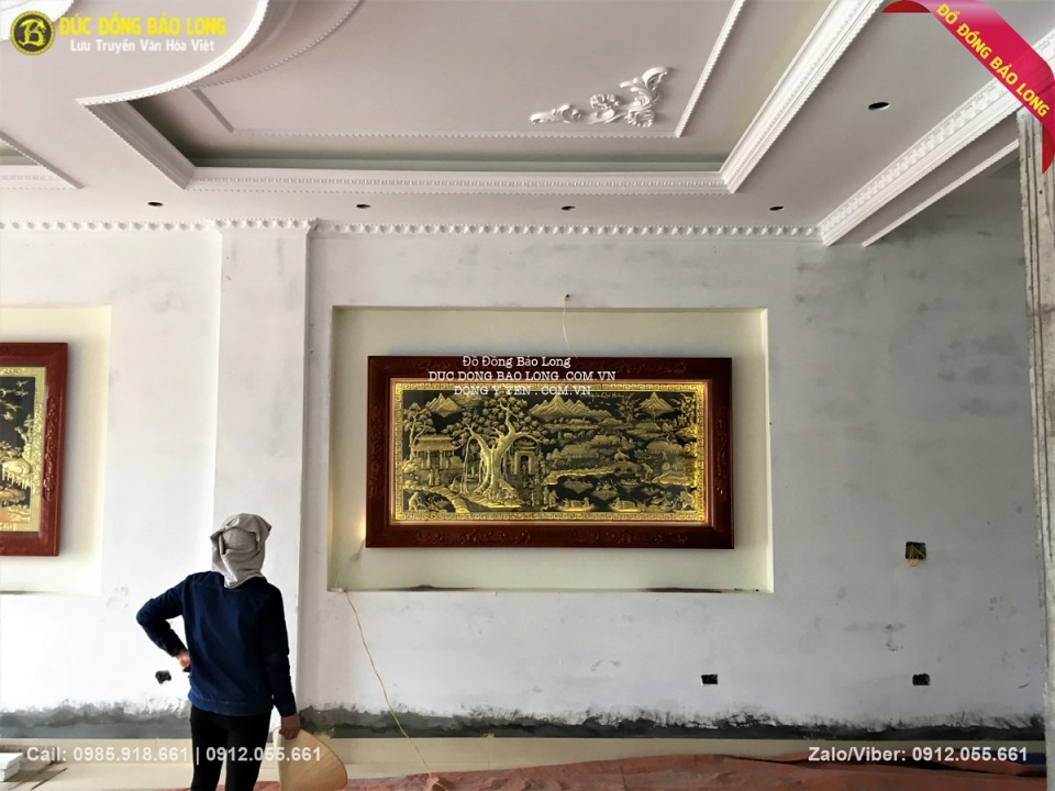 Tranh cội nguồn quê hương cực đẹp được lắp đặt tại phòng khách của 1 căn biệt thự sang trọng