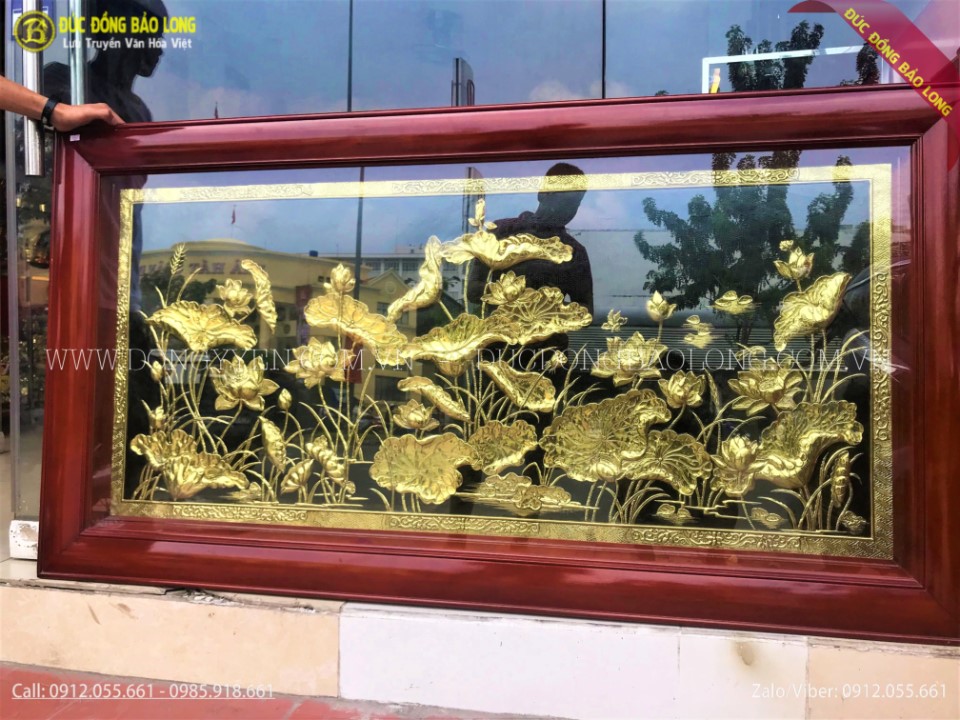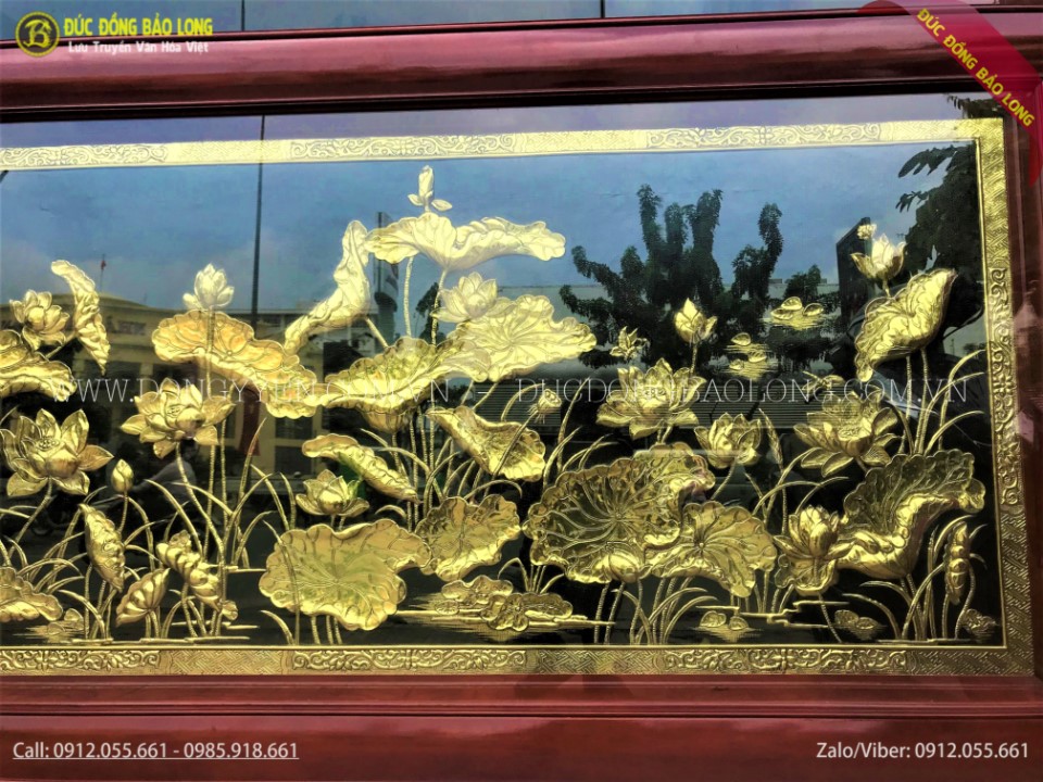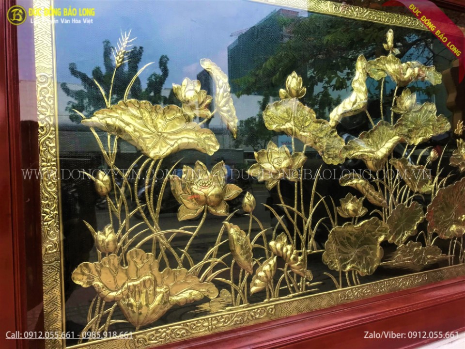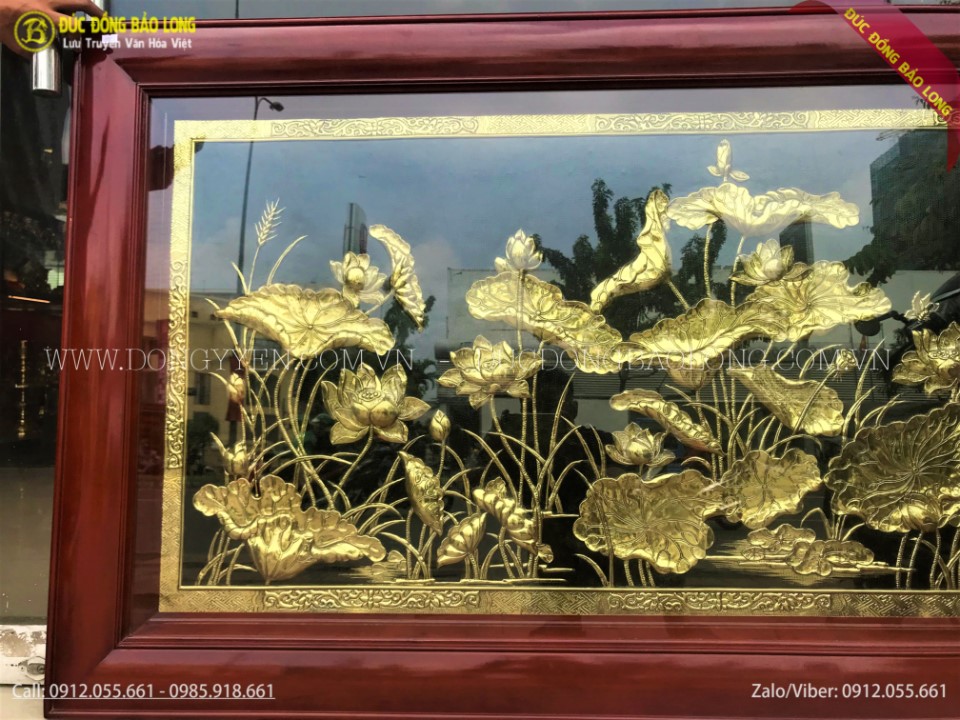 Tranh hoa sen bằng đồng được chạm hoàn toàn thủ công từ nguyên liệu đồng vàng nhập khẩu Hàn Quốc