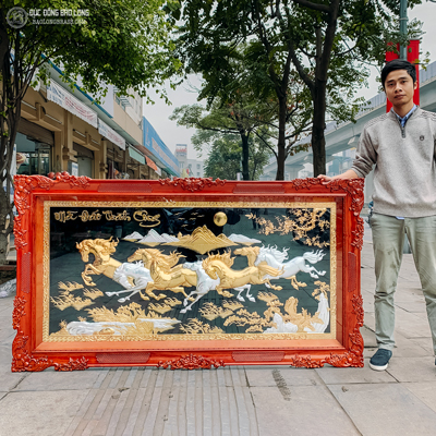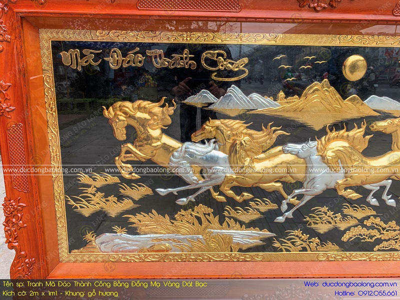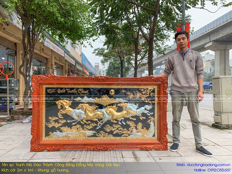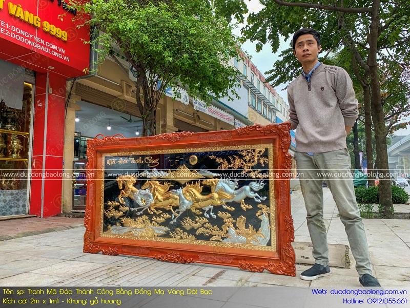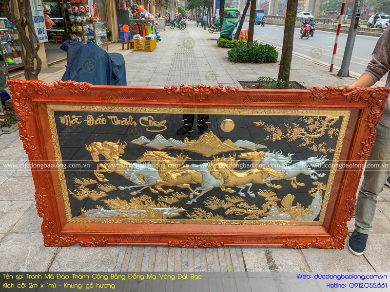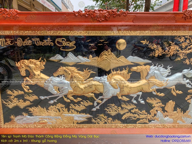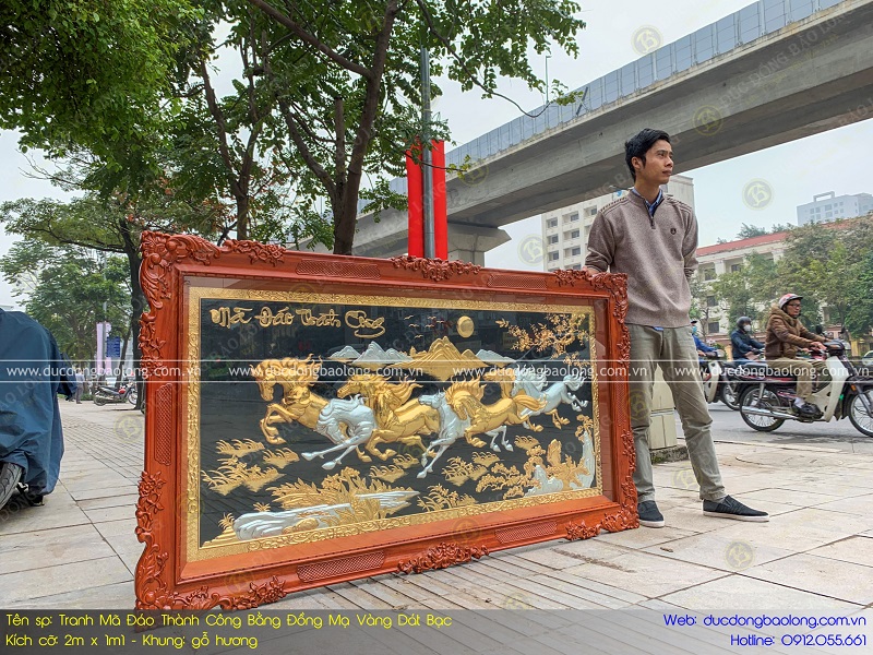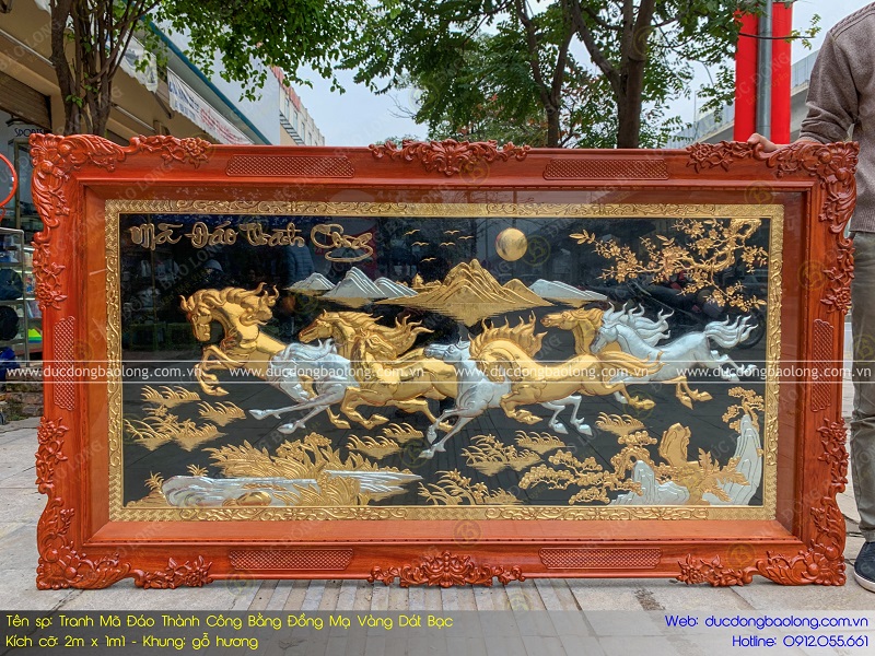 Địa chỉ mua tranh mã đáo thành công bằng đồng 2m x 1m1 mạ vàng dát bạc của Bảo Long
