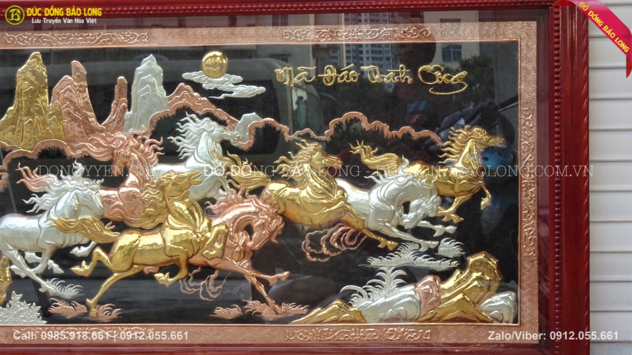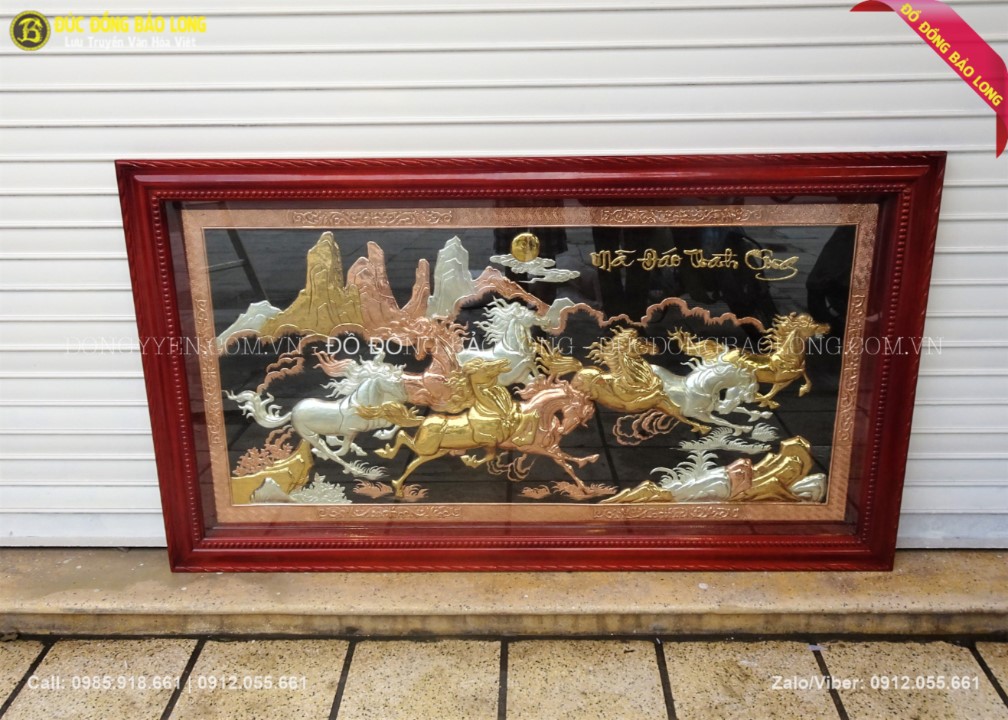 Kích thước tranh mã đáo thành công bằng đồng mạ tam khí