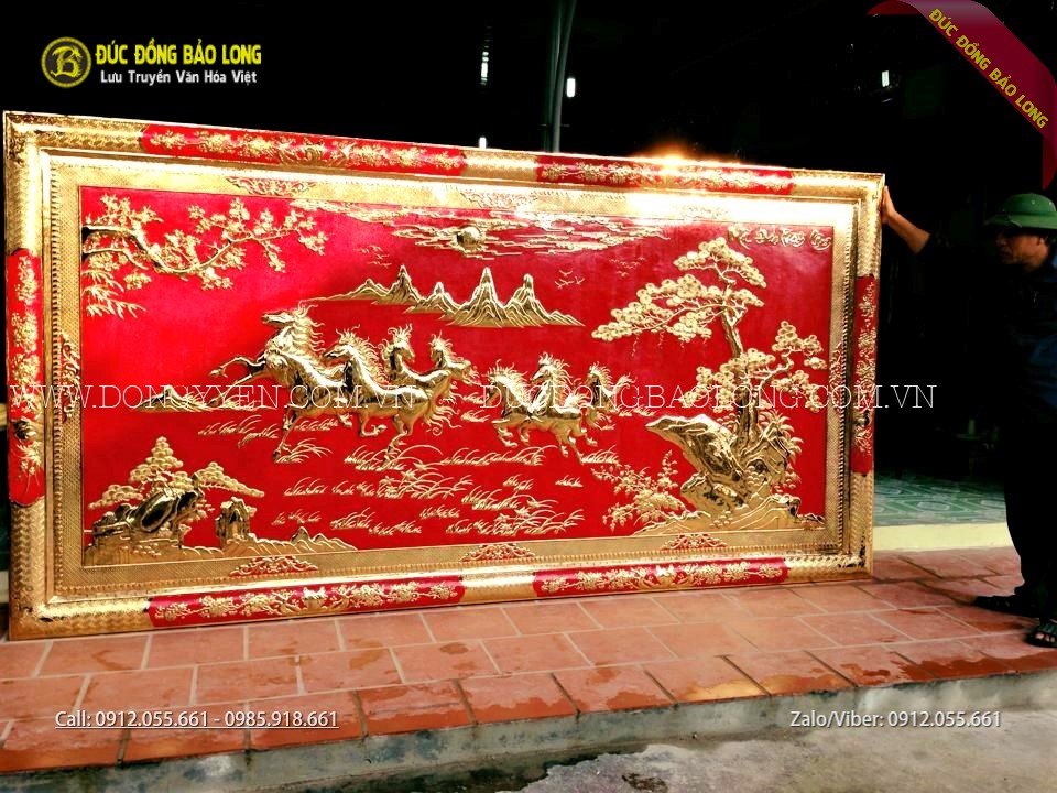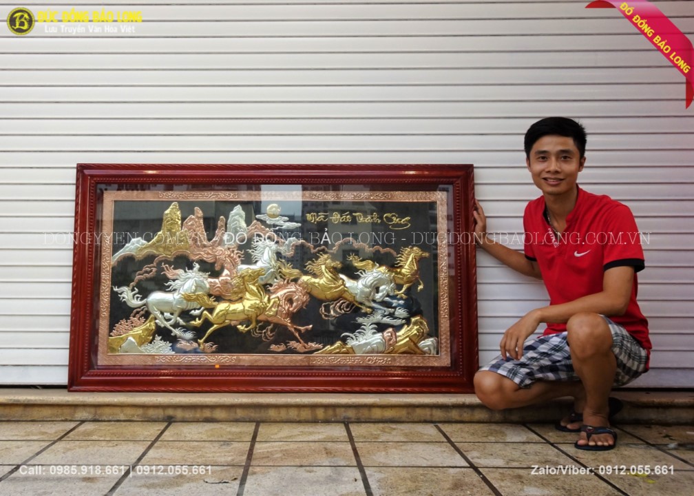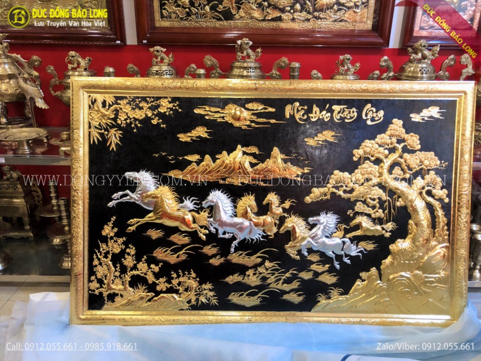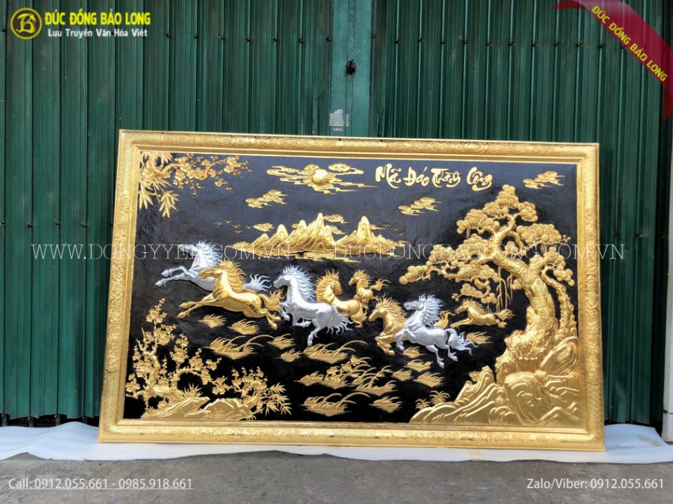 Bức mã đáo thành công khung liền đồng mạ vàng 24k dát bạc 9999 1m97x1m27