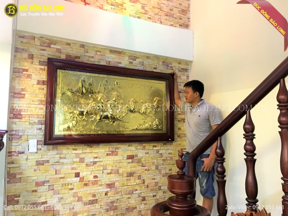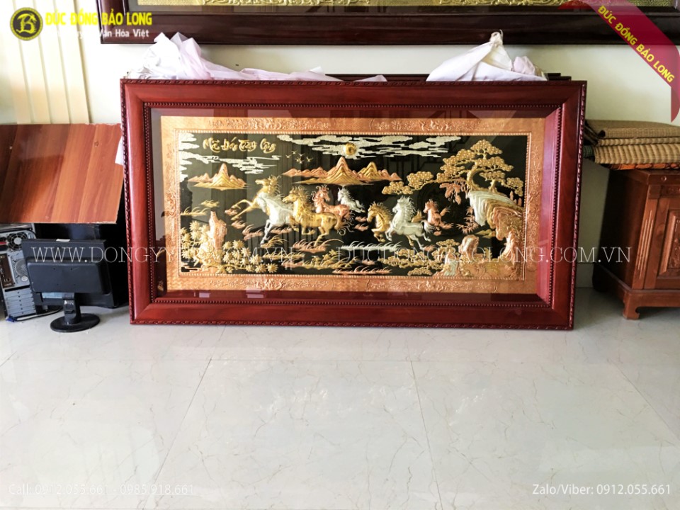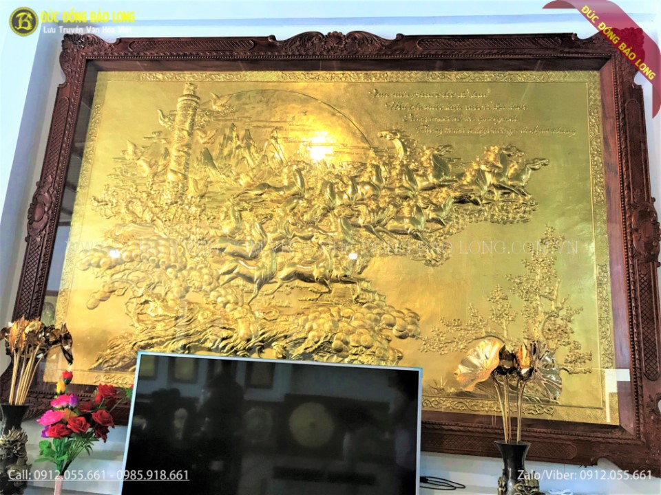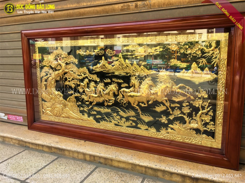 Bức mã đáo thành công khung liền đồng mạ vàng 24k dài 2m62 cao 1m55
