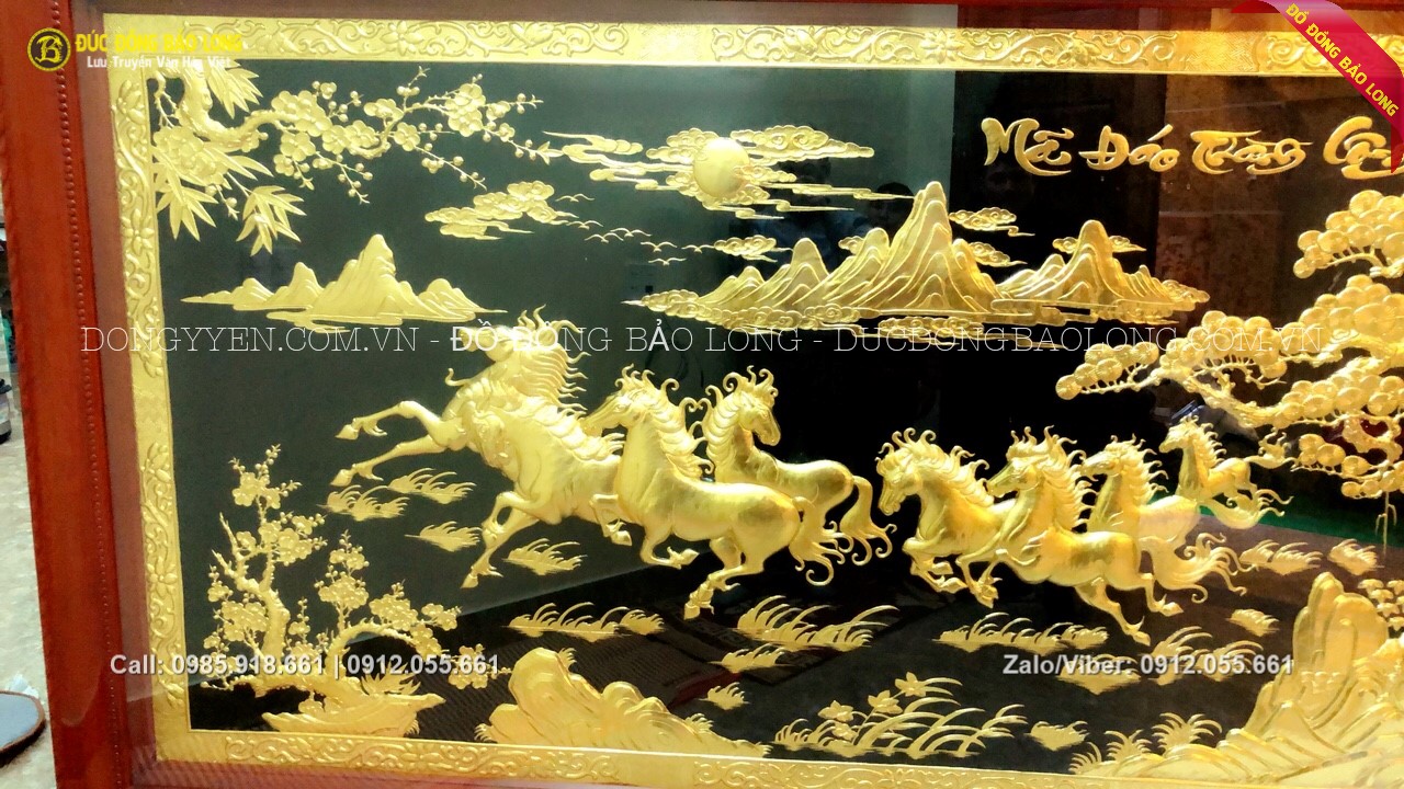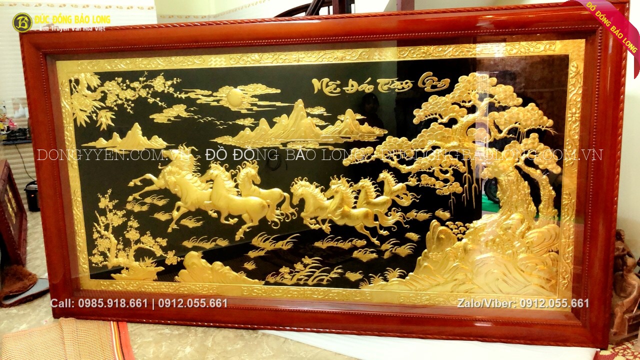 Tranh mã đáo thành công mạ vàng 24k, dát vàng 9999 sang trọng, đẳng cấp, sản xuất thủ công với những tiêu chuẩn khắt khe bậc nhất, chế tác độc quyền