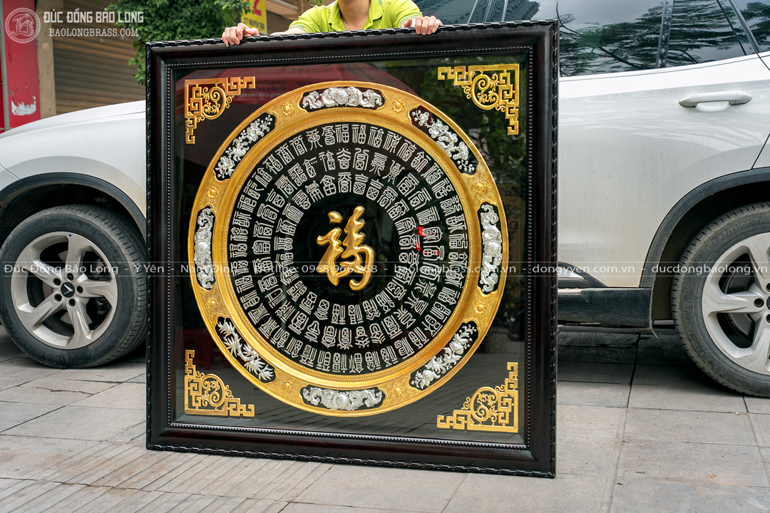 Bức tranh được chạm hoàn toàn thủ công phương pháp truyền thống đúc đồng Ý Yên. Để tạo ra bức tranh chữ hoàn hảo, đòi hỏi người nghệ nhân có tay nghề cao, tỉ mỉ, cẩn thận và thời gian dài để hoàn thành. Nguyên liệu được sử dụng là loại đồng vàng nguyên tấm nhập khẩu từ Hàn Quốc, đồng dày tiêu chuẩn 8 rem.