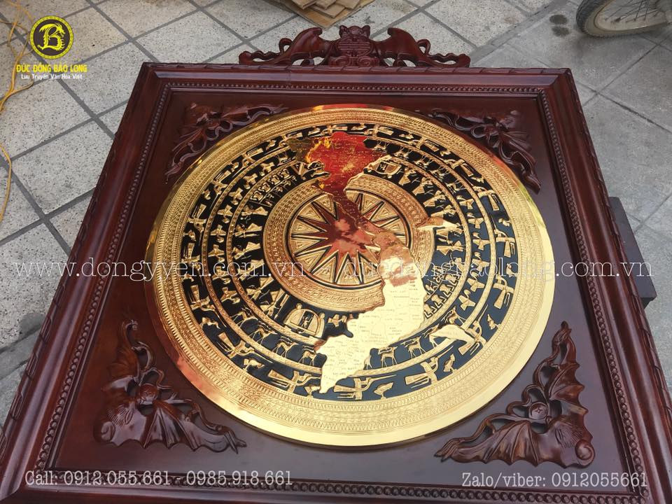 Tranh mặt trống đồng hình bản đồ mạ vàng 24k