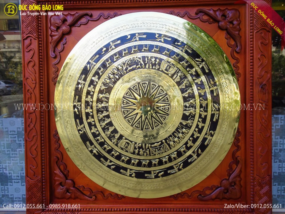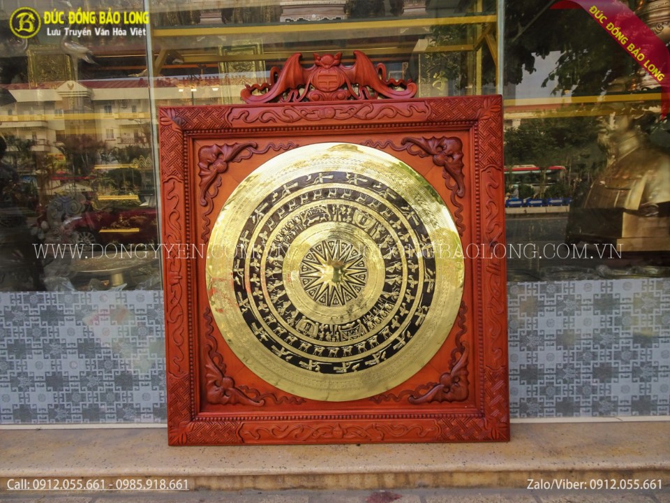 Tranh mặt trống đồng khung gỗ đục 1m07