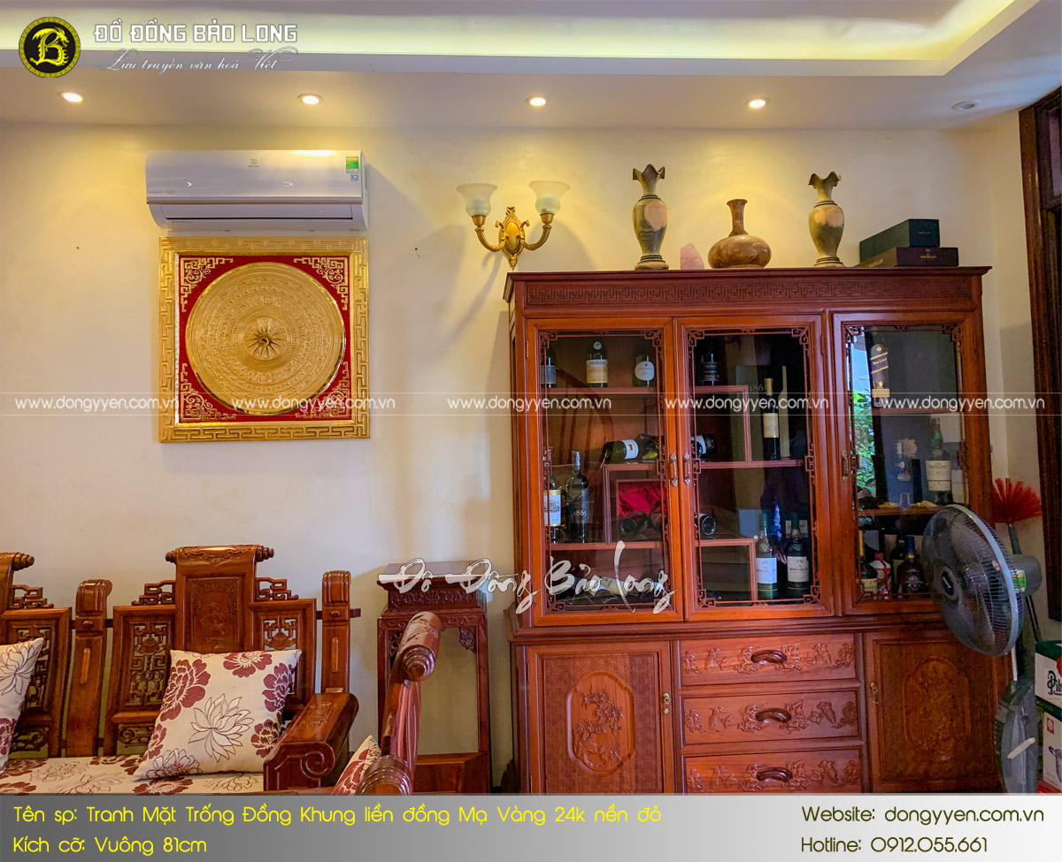Tranh Mặt trống đồng khung liền đồng mạ vàng 24k khổ vuông 81cm là mẫu sản phẩm mới nhất được giao tới địa chỉ khách hàng. Mẫu sản phẩm khích hợp treo trong phòng khách, phòng làm việc,..