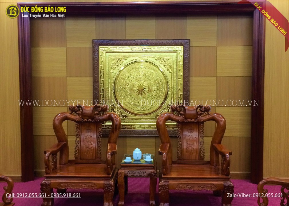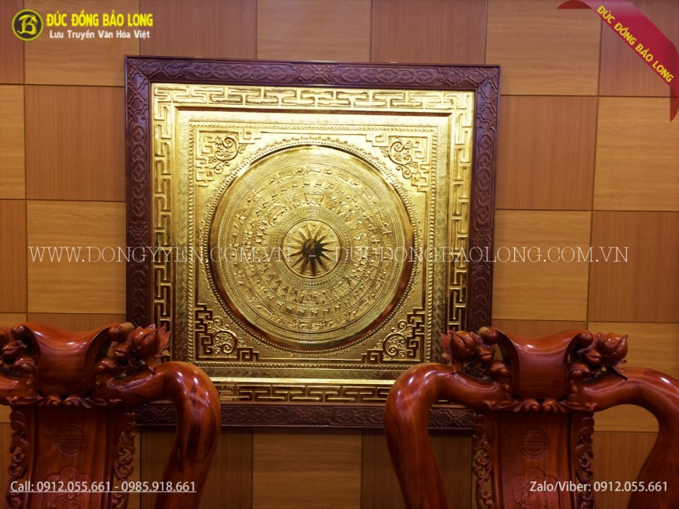 Tranh mặt trống bằng đồng khung liền đồng mạ vàng 24k