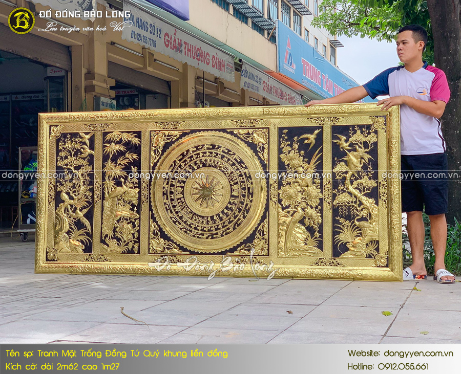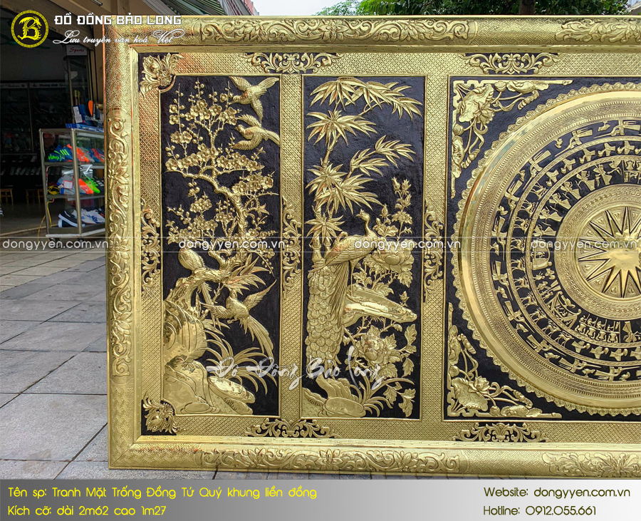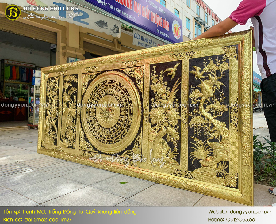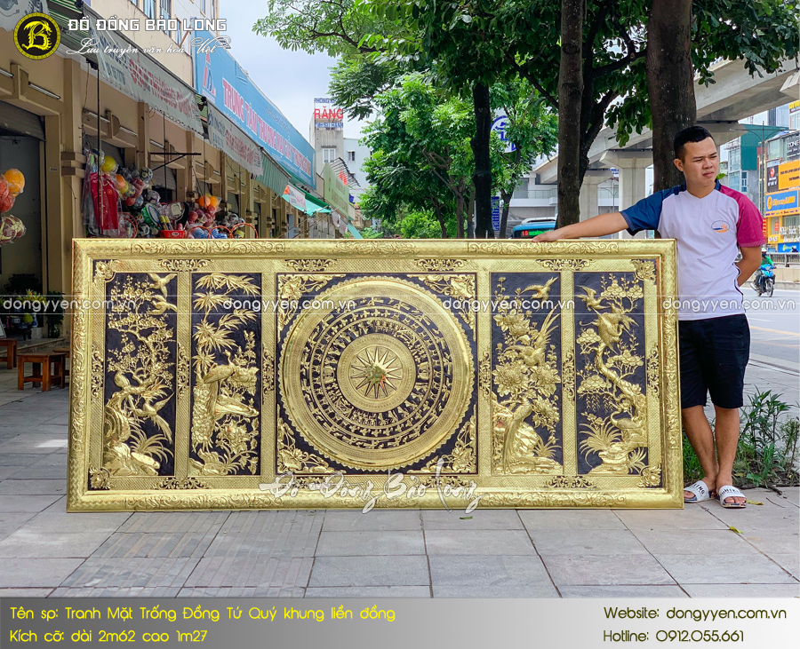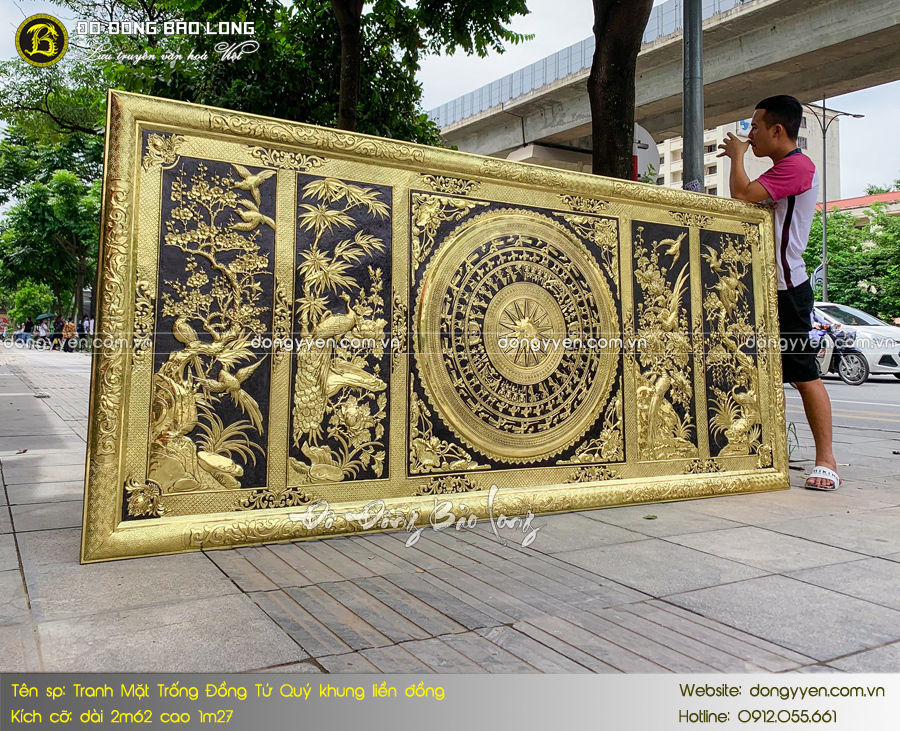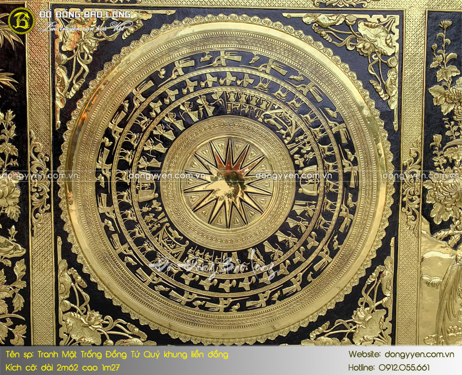 Tranh Mặt trống đồng Tứ Quý khung liền đồng 2m62 x 1m27