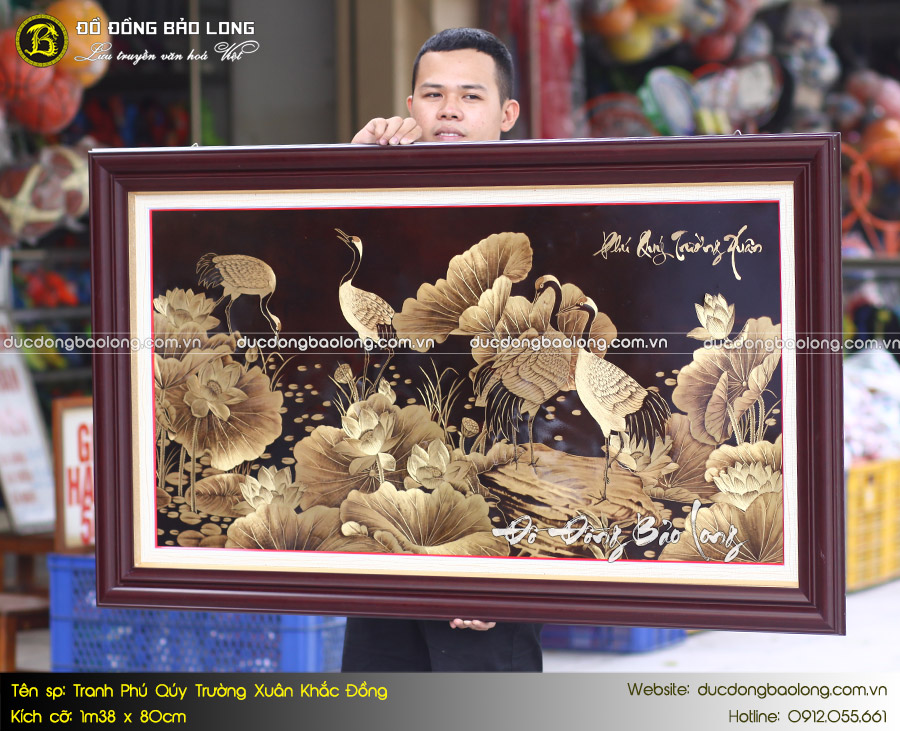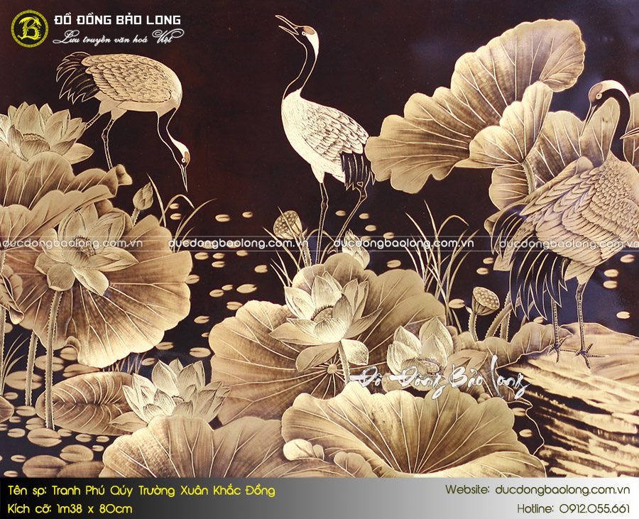 Mang kiểu dáng mới lạ, mẫu mã độc đáo, tranh Phú Quý Trường Xuân khắc đồng khổ 1m38 x 80cm là dòng tranh được nhiều khách hàng yêu thích và lựa chọn. Sản phẩm được khắc vẽ thủ công theo phương pháp truyền thống, họa tiết hoa văn thể hiện sự tinh xảo, mềm mại, vô cùng sinh động.