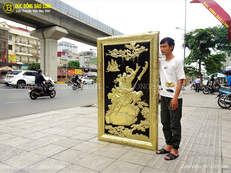 Tranh thuộc loại khổ đứng cao 1m76, rộng 1m07. Tranh thích hợp treo tại mọi không gian. Ngoài ra, chúng tôi còn nhận chạm tranh theo kích thước yêu cầu hoặc quý khách có thể tham khảo một số mẫu Tranh Đồng khác để có thêm sự lựa chọn.