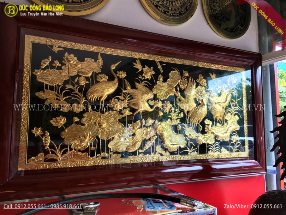Bức tranh sen hạc 1m76 mạ vàng phù hợp với nhưng khổ tường và không gian vừa phải, có thể treo phòng khách, phòng làm việc hoặc phòng thờ, sẽ đem lại cho gia chủ sự thanh tịnh, thoát tục nhẹ nhàng như chính khung cảnh, một sự kết hợp tuyệt vời giữa hạc và sen. Qúy khách muốn sở hữu những bức tranh đồng này thì xin hãy liên hệ cho chúng tôi hoặc quý khách tham khảo các mẫu tranh đồng khác để có thêm sự lựa chọn.