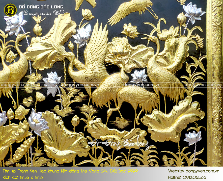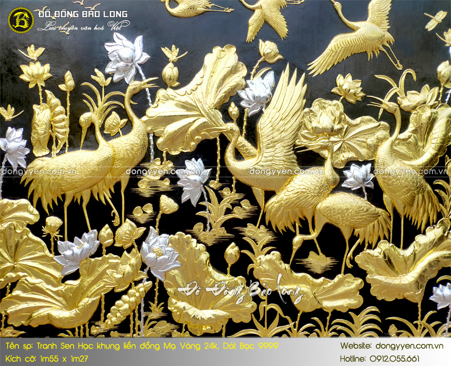 =>> CÓ thể bạn quan tâm: Tranh Sen Hạc mạ vàng dát bạc khung gỗ đỏ