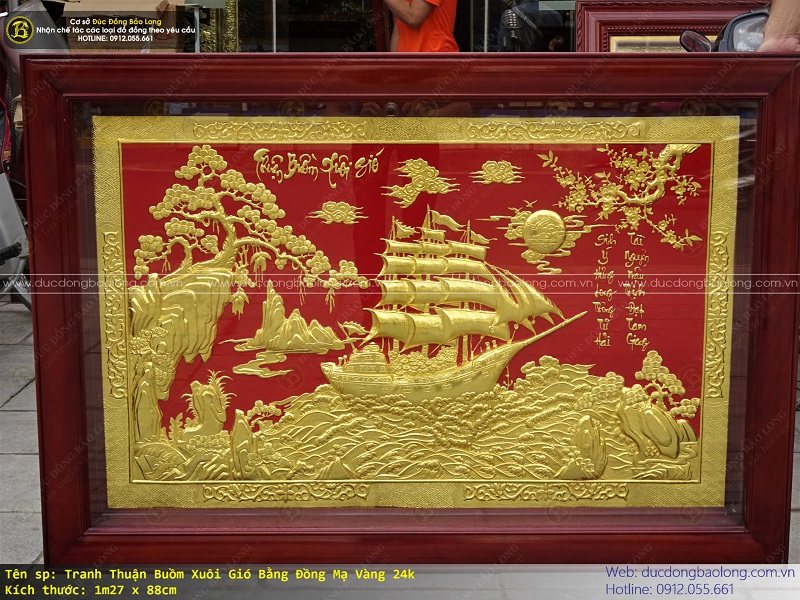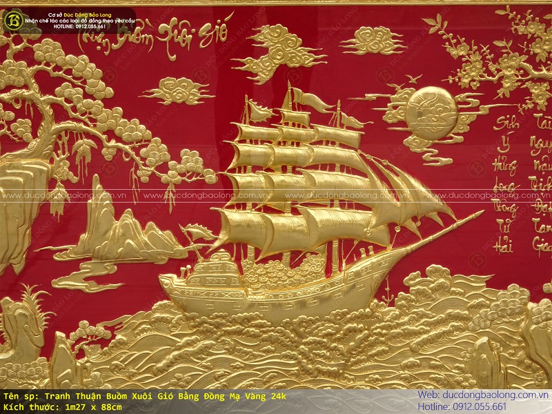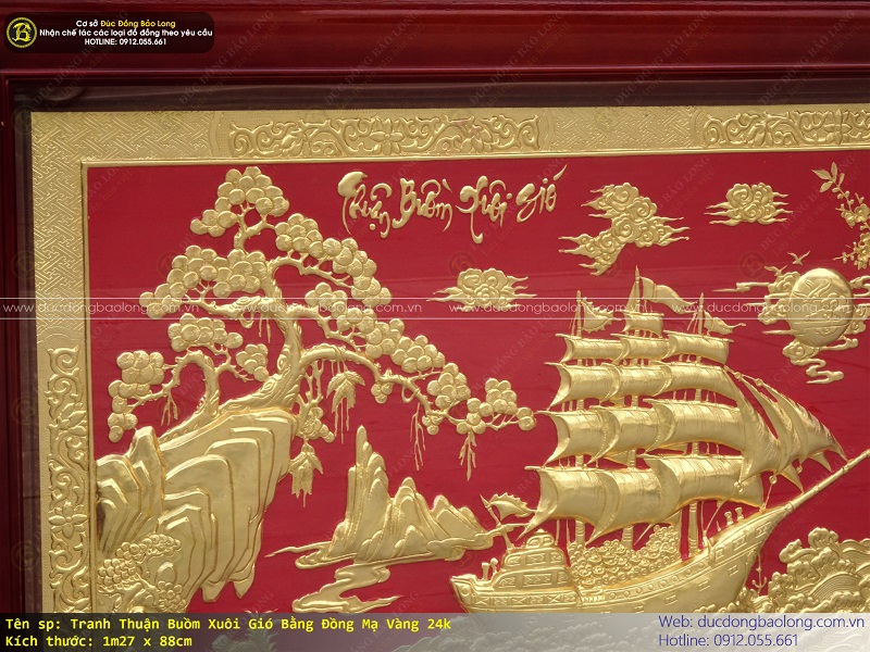 Các hình ảnh khác về bức tranh thuận buồm xuôi gió bằng đồng 1m27 x 88cm mạ vàng nền đỏ