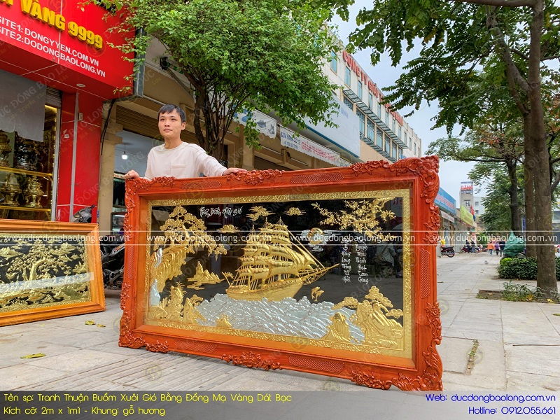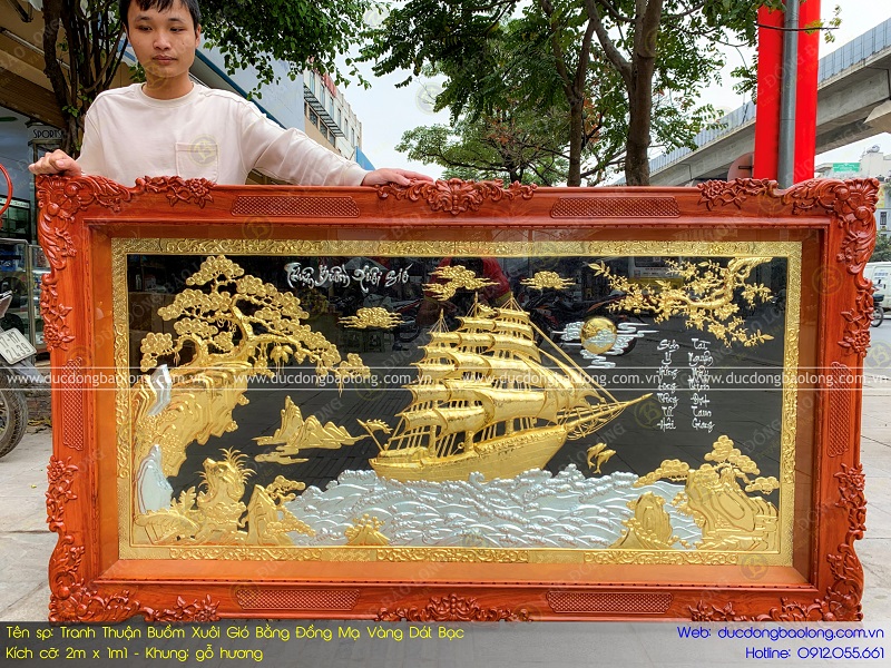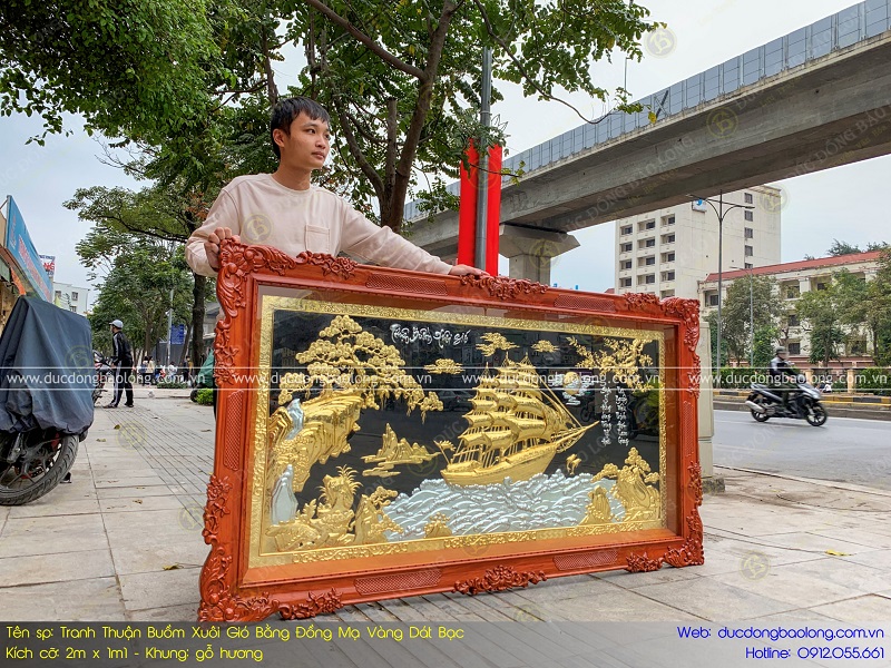 Địa chỉ mua tranh thuận buồm xuôi gió bằng đồng 2m x 1m1 mạ vàng dát bạc của Bảo Long
